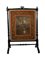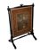 A blackened wooden fire screen, depicting the port of Antwerp. ca. 1880.
