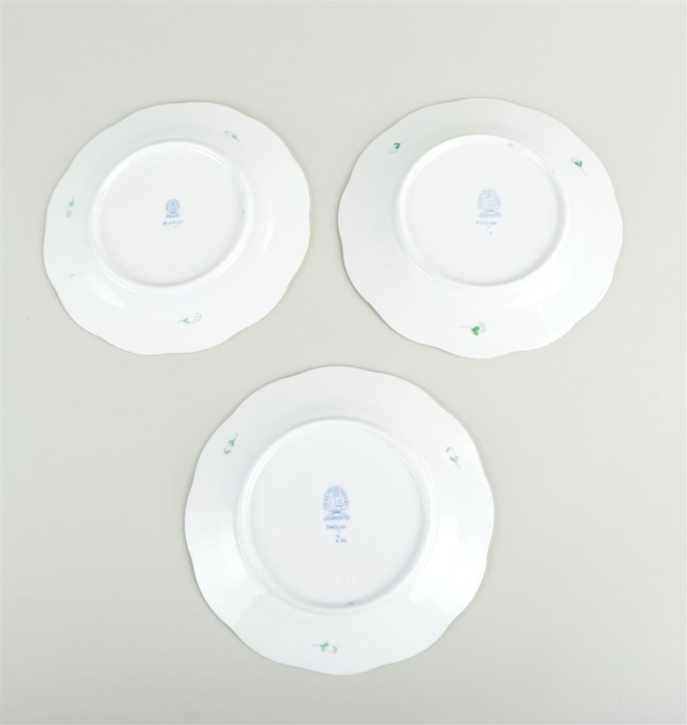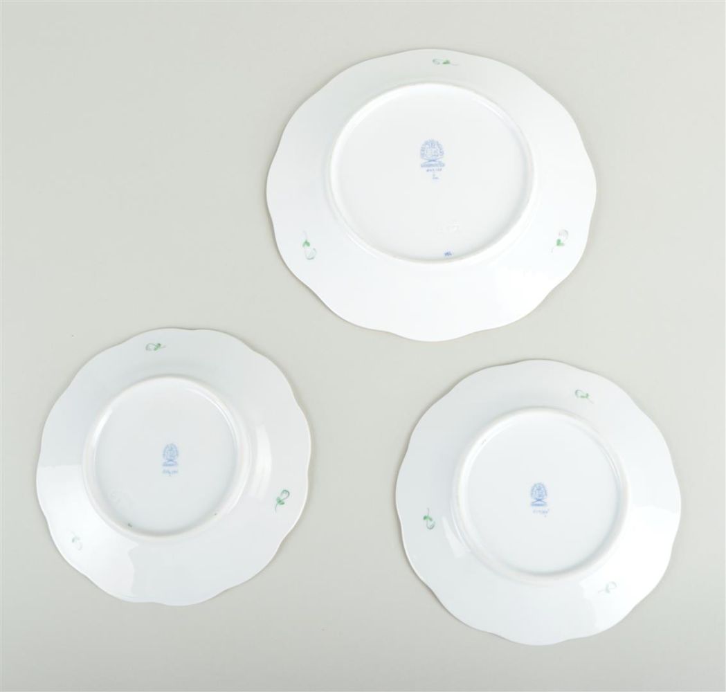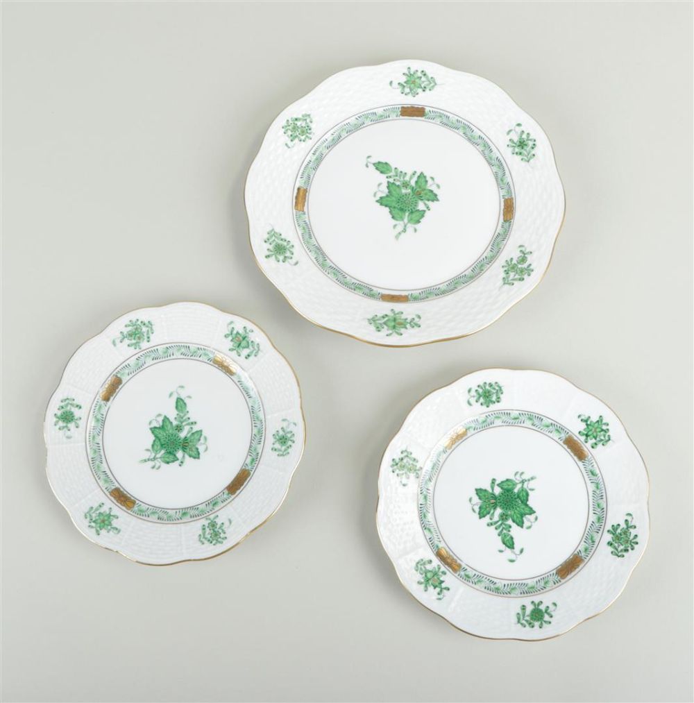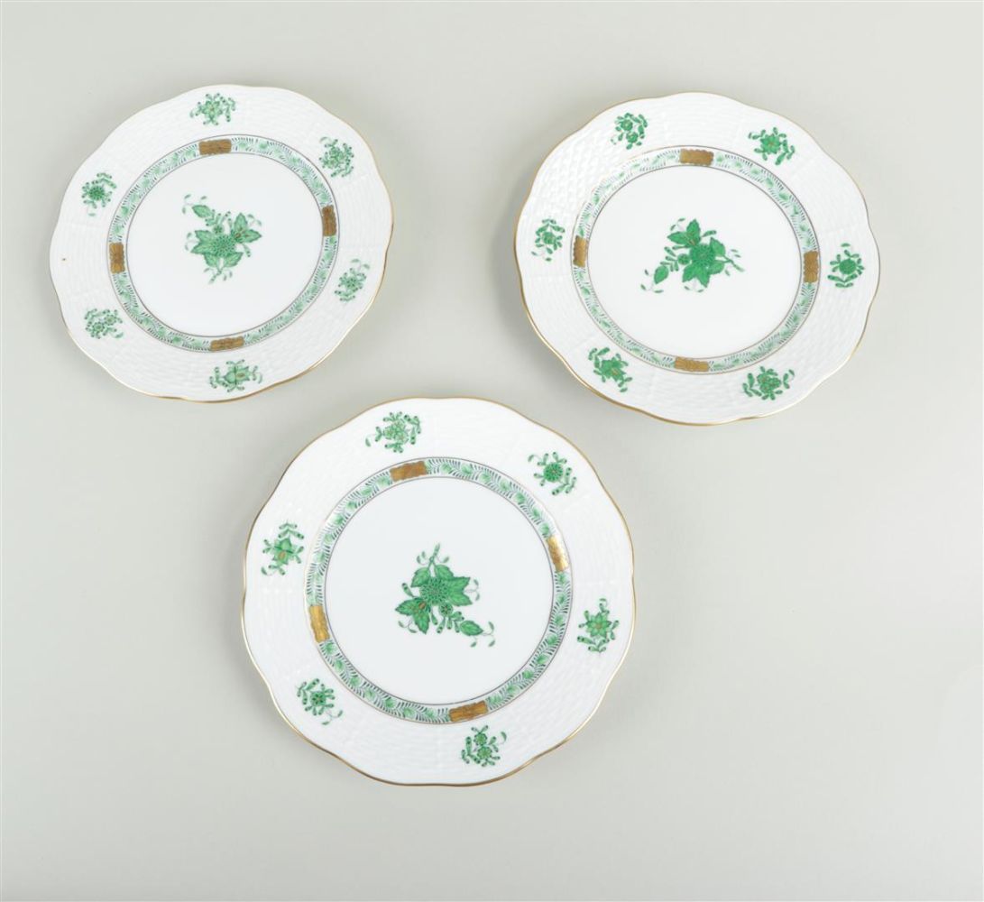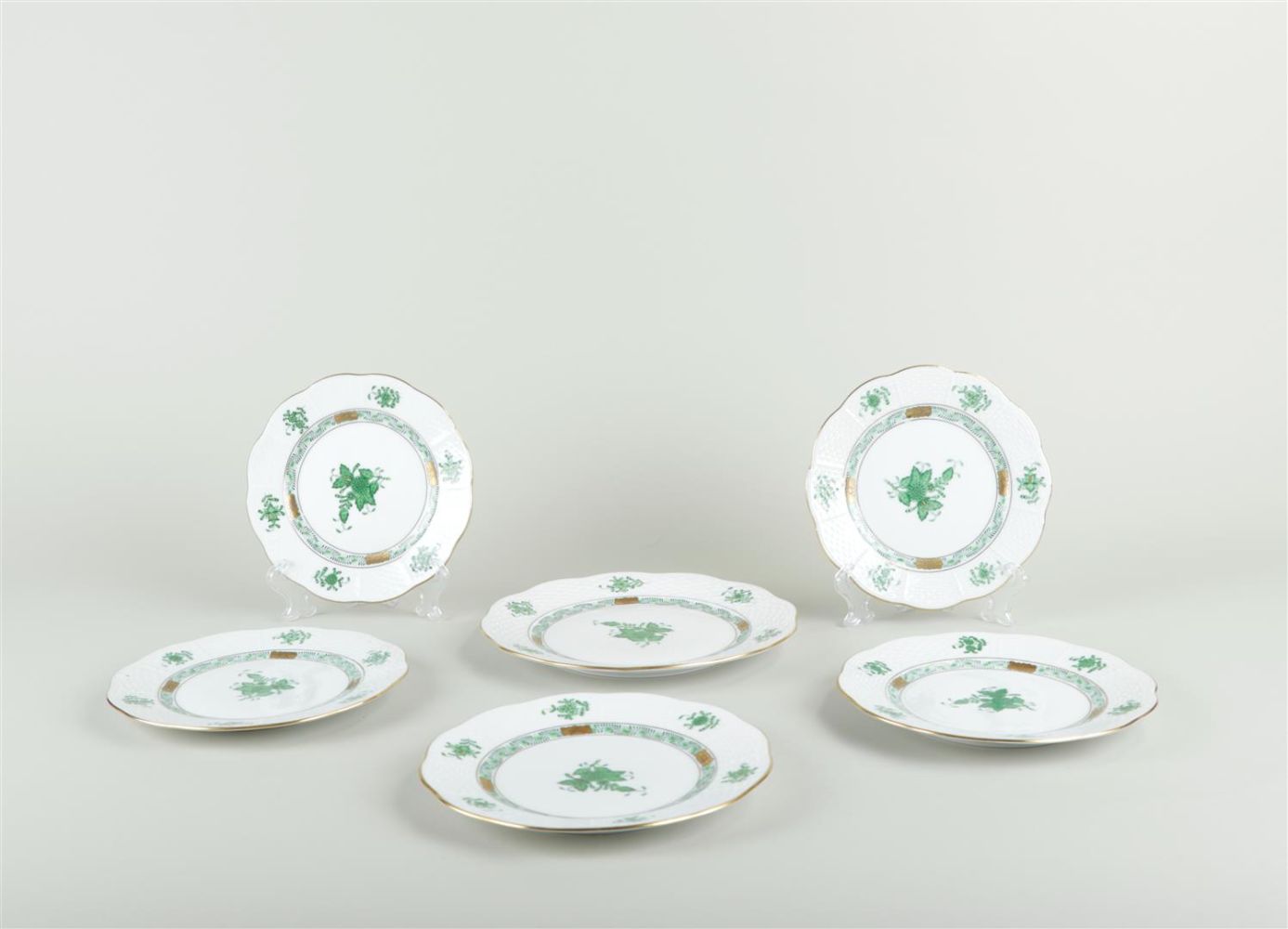 A lot of six porcelain plates with Apoyine green decoration. Herend, late 20th century.