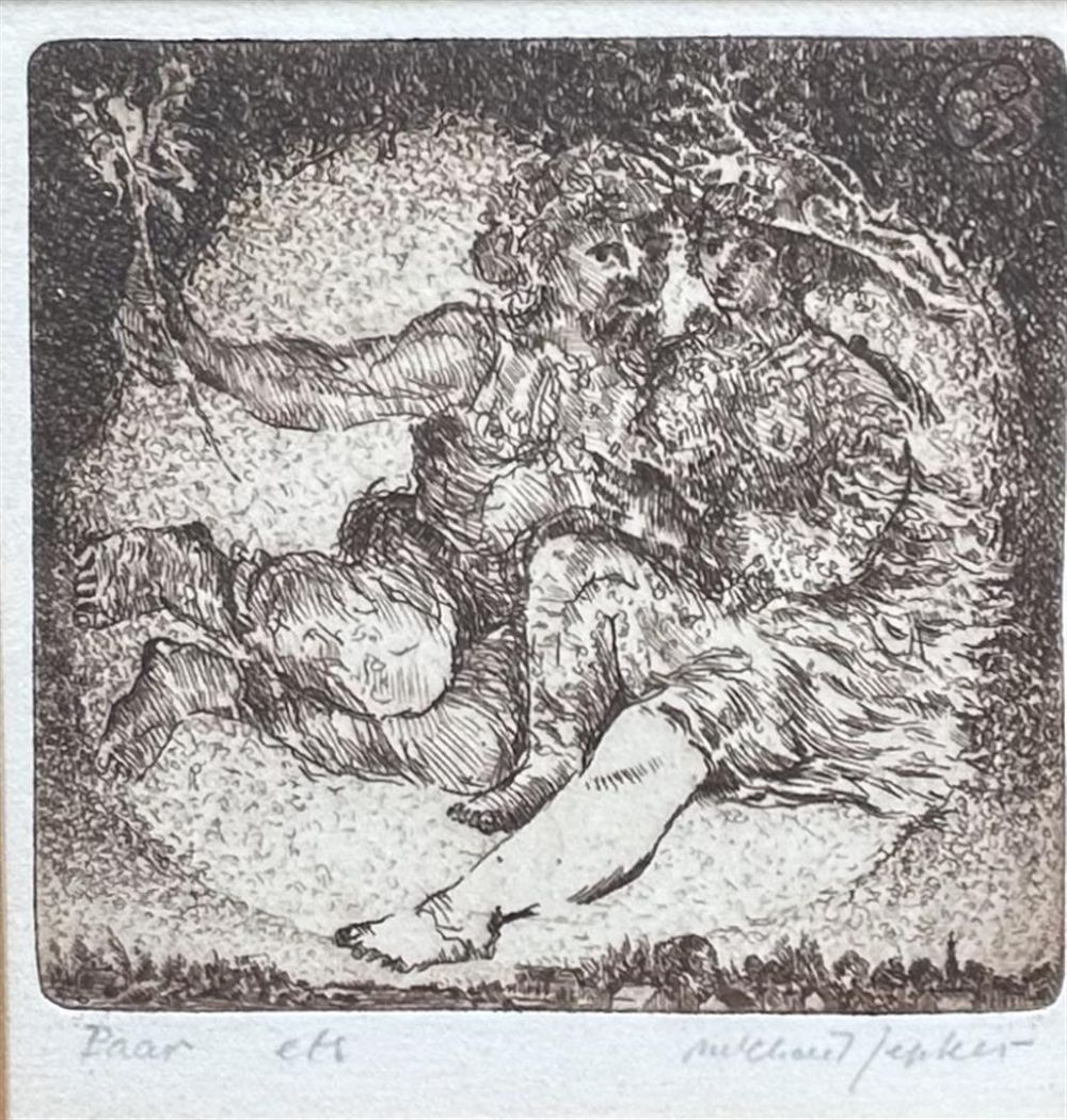 Michaël F.F. Jepkes (B. Amsterdam 1938), 'Cirkels', etching and aquatint in colour, signed, annotated with title, and numbered 5/35, and dated '84 (in pencil). Also a smaller etching entitled 'Paar' by the same artist. The largest: 40 x 50 cm.