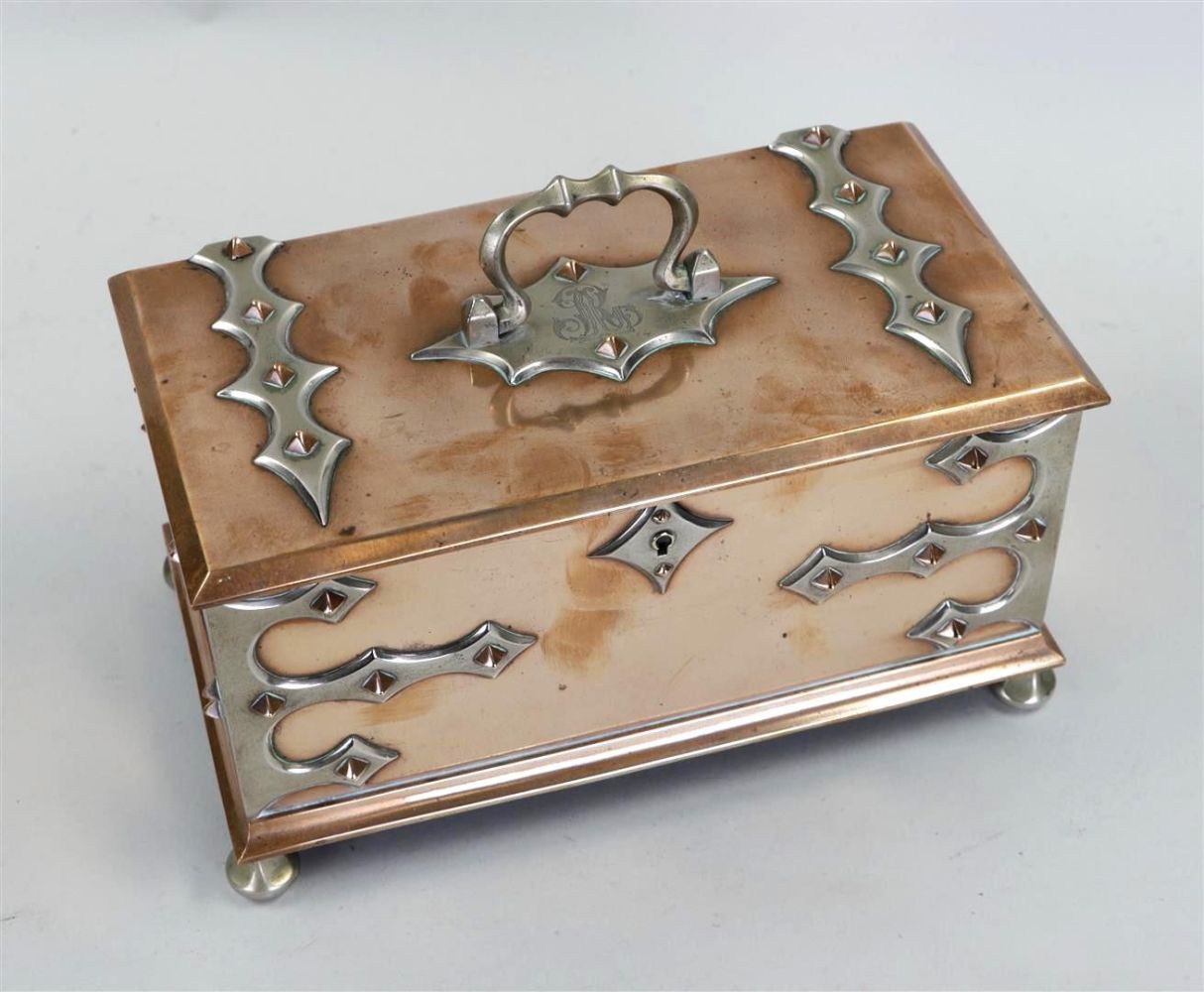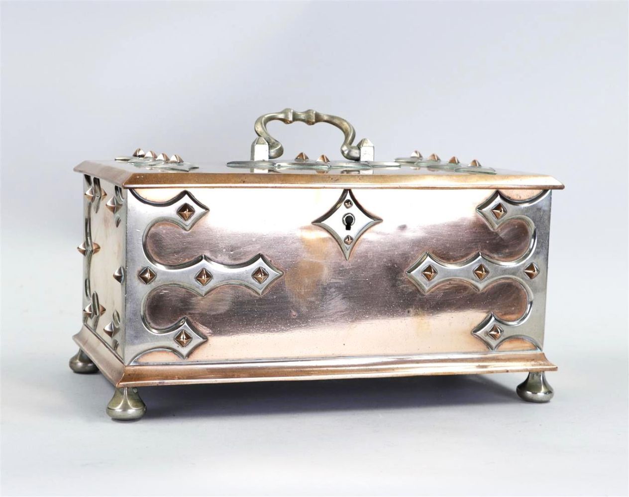 A brass valuables box, 19th century.13 x 14 x 26 cm.