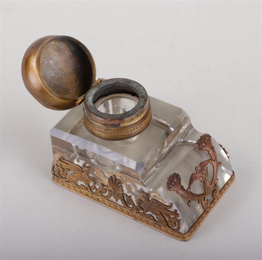 A lot consisting of a copper Art Nouveau oil lamp, a Neo Classical oil lamp and an inkwell.