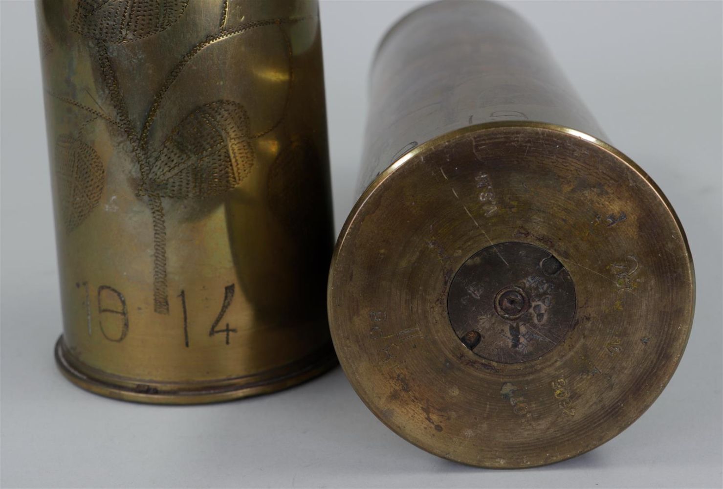 A miscellaneous lot consisting of two grenade shells, mother-of-pearl fish,...