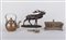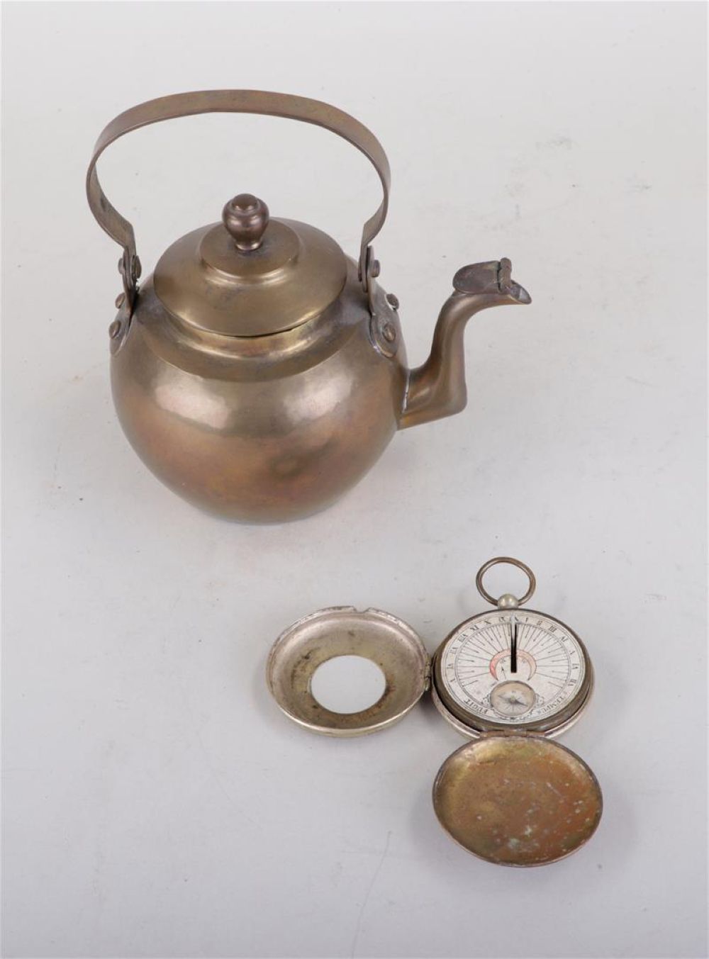 A miscellaneous lot consisting of a bronze deer, an open cast lid box, a compass and a cauldron.