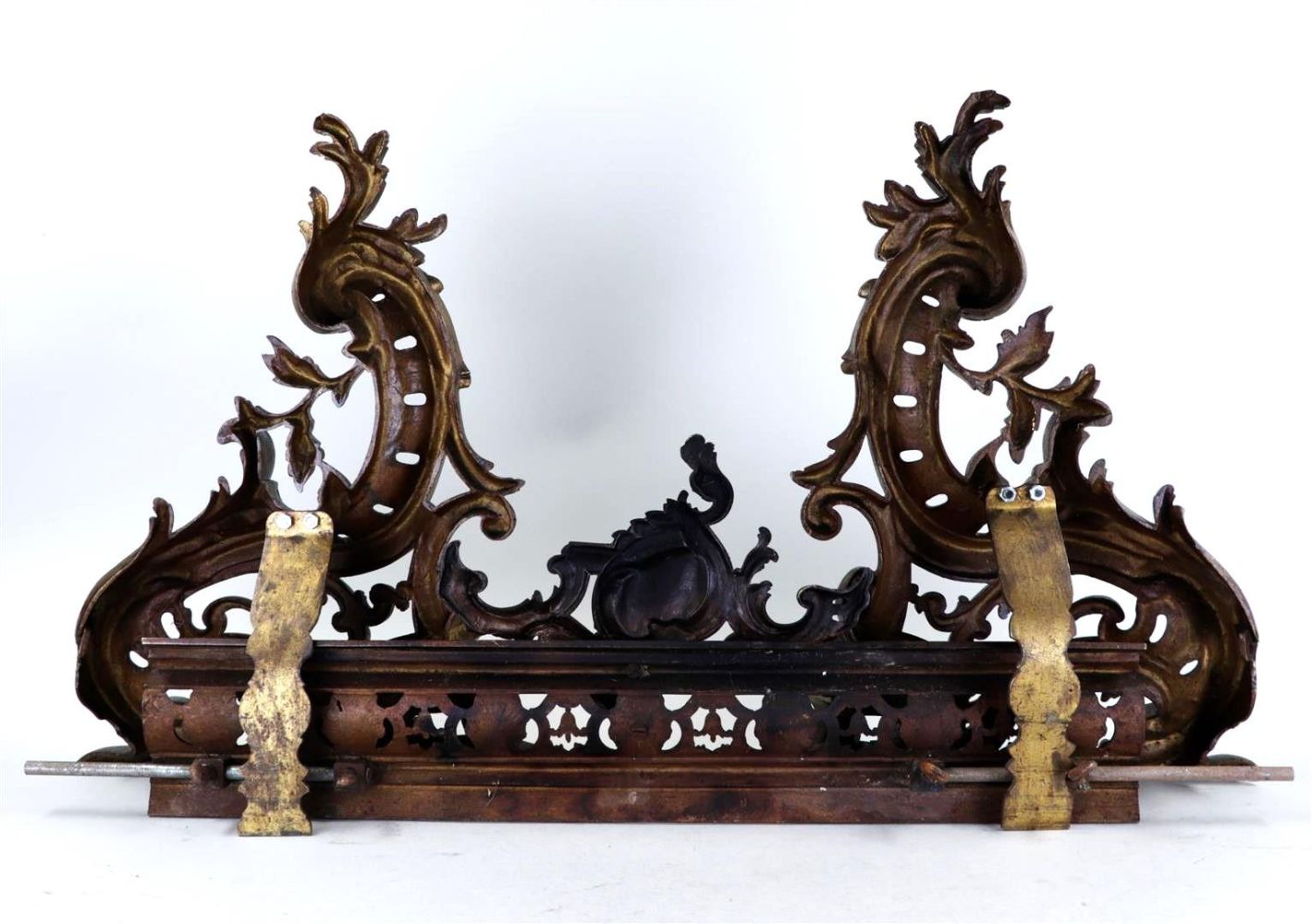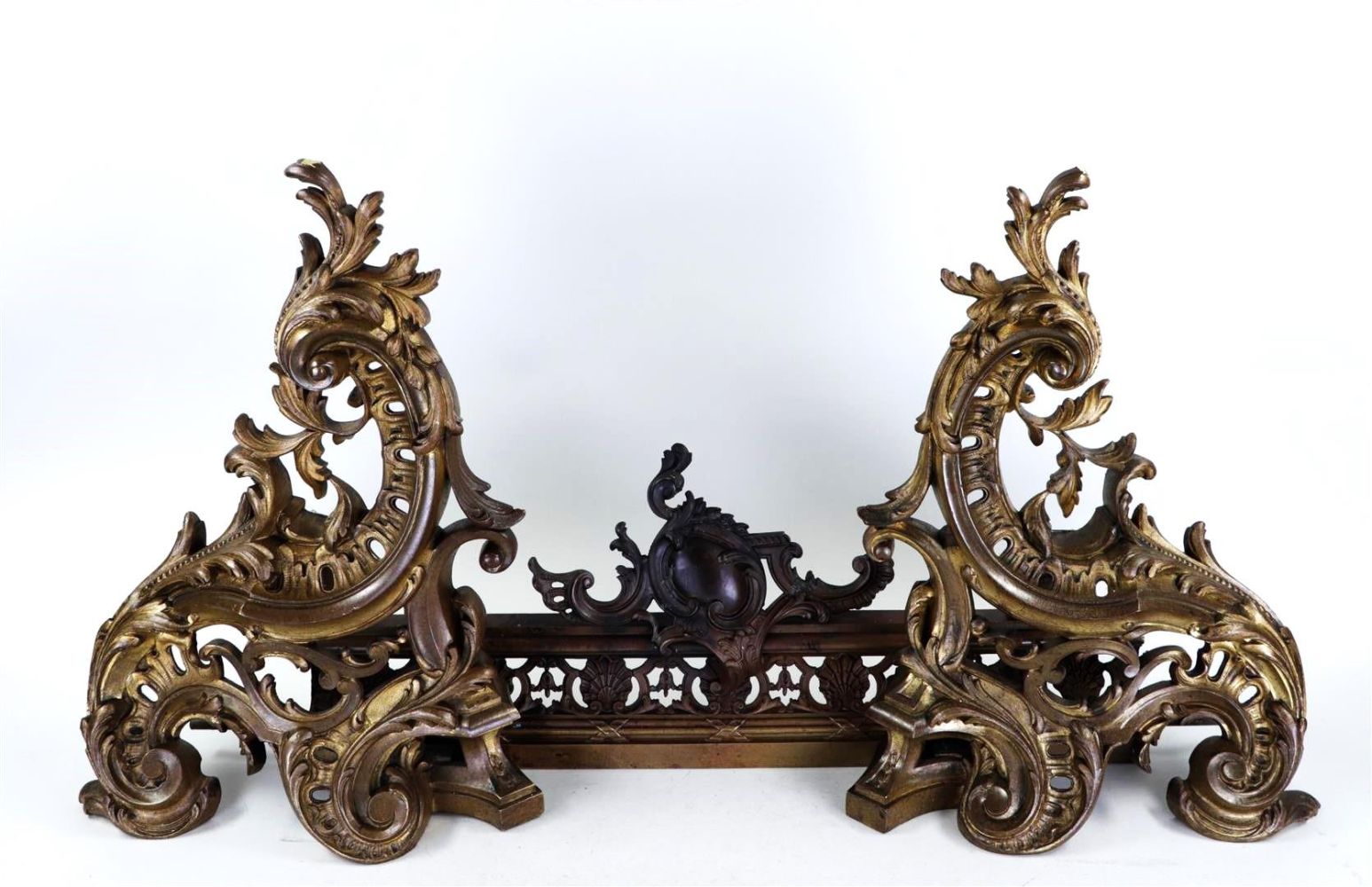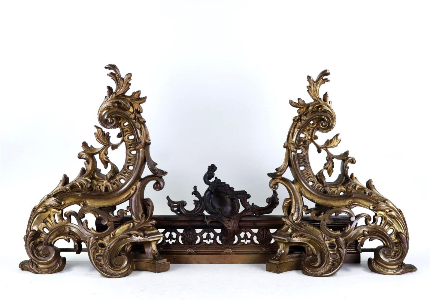 A cast bronze, Louis XV style fireplace surround, 19th century. Removable into three parts.