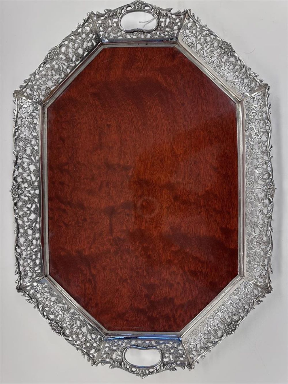 Lot 1218 | A tray, with walnut top and silver rim, second grade. 44 x 32 cm.
