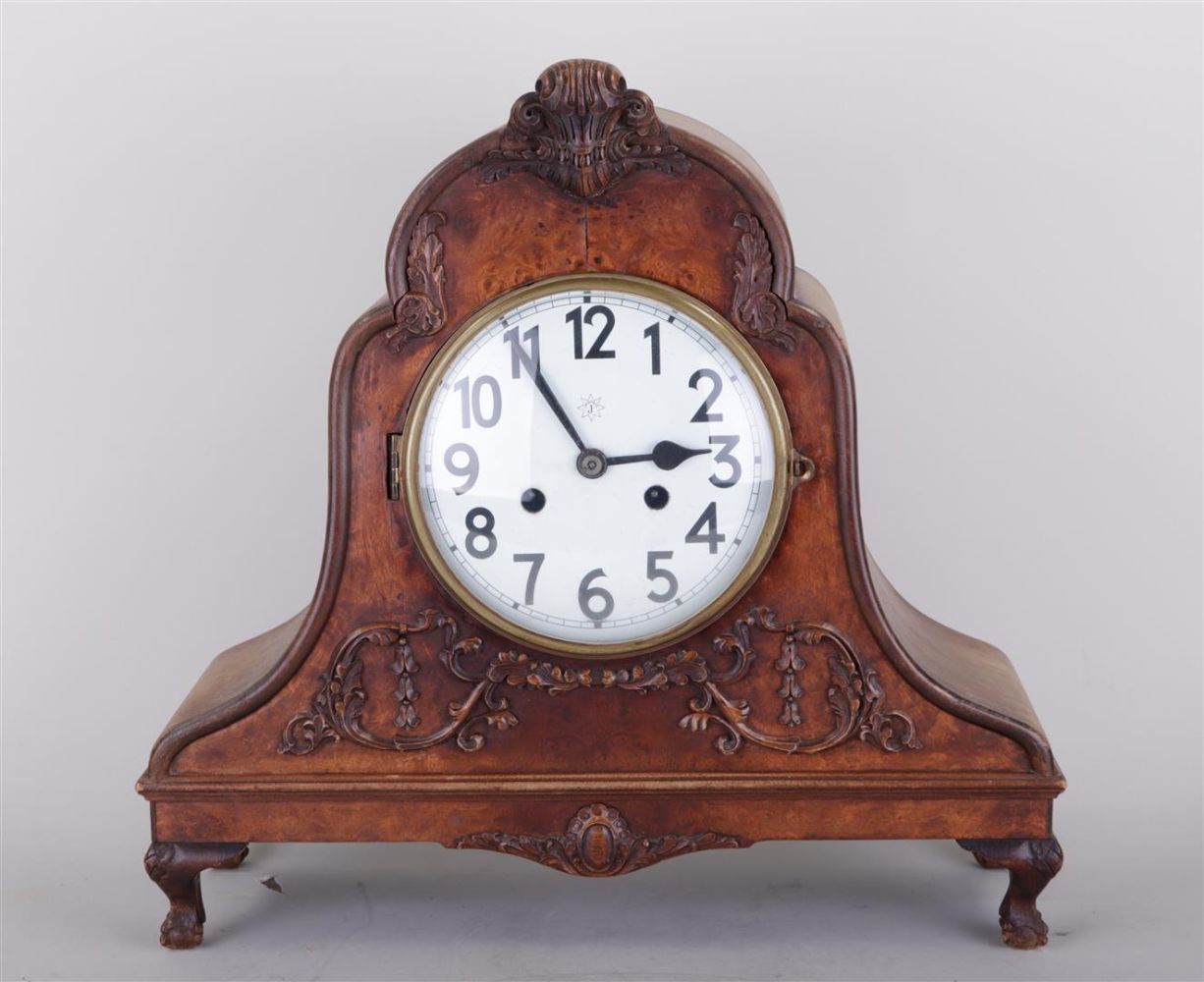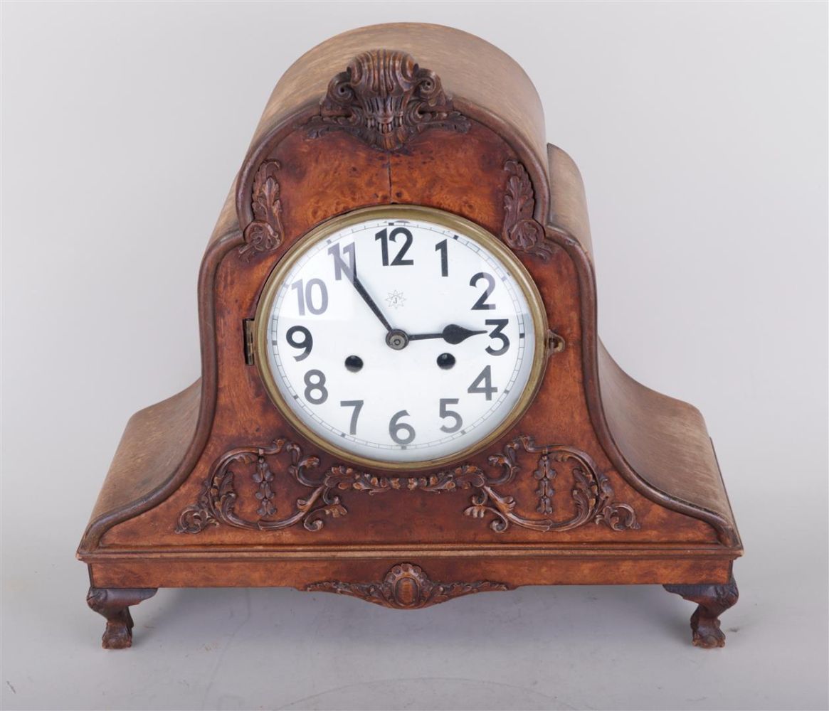 A large wooden mantel clock, Junghhans movement. 1st half 20th century.