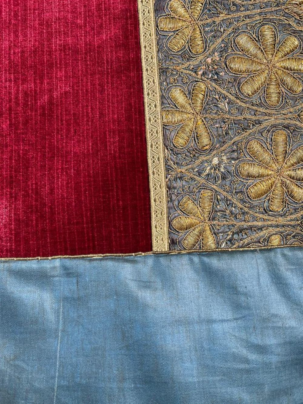 A beautifully embroidered tapestry with wrought iron rings. India.