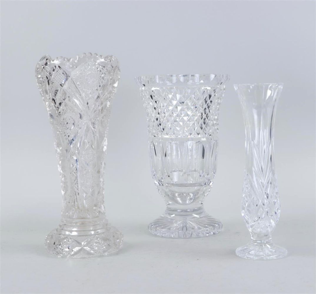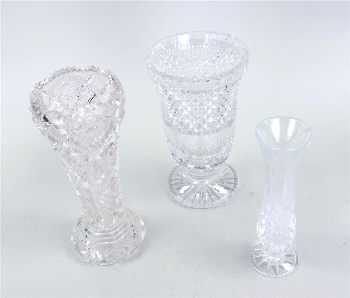 A lot consisting of (3) cut crystal vases.H.: 23, 25, & 22 cm.