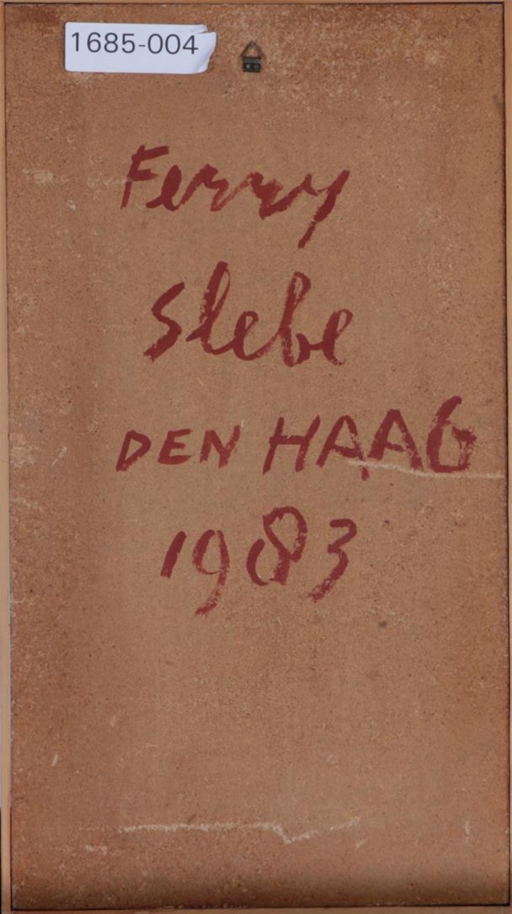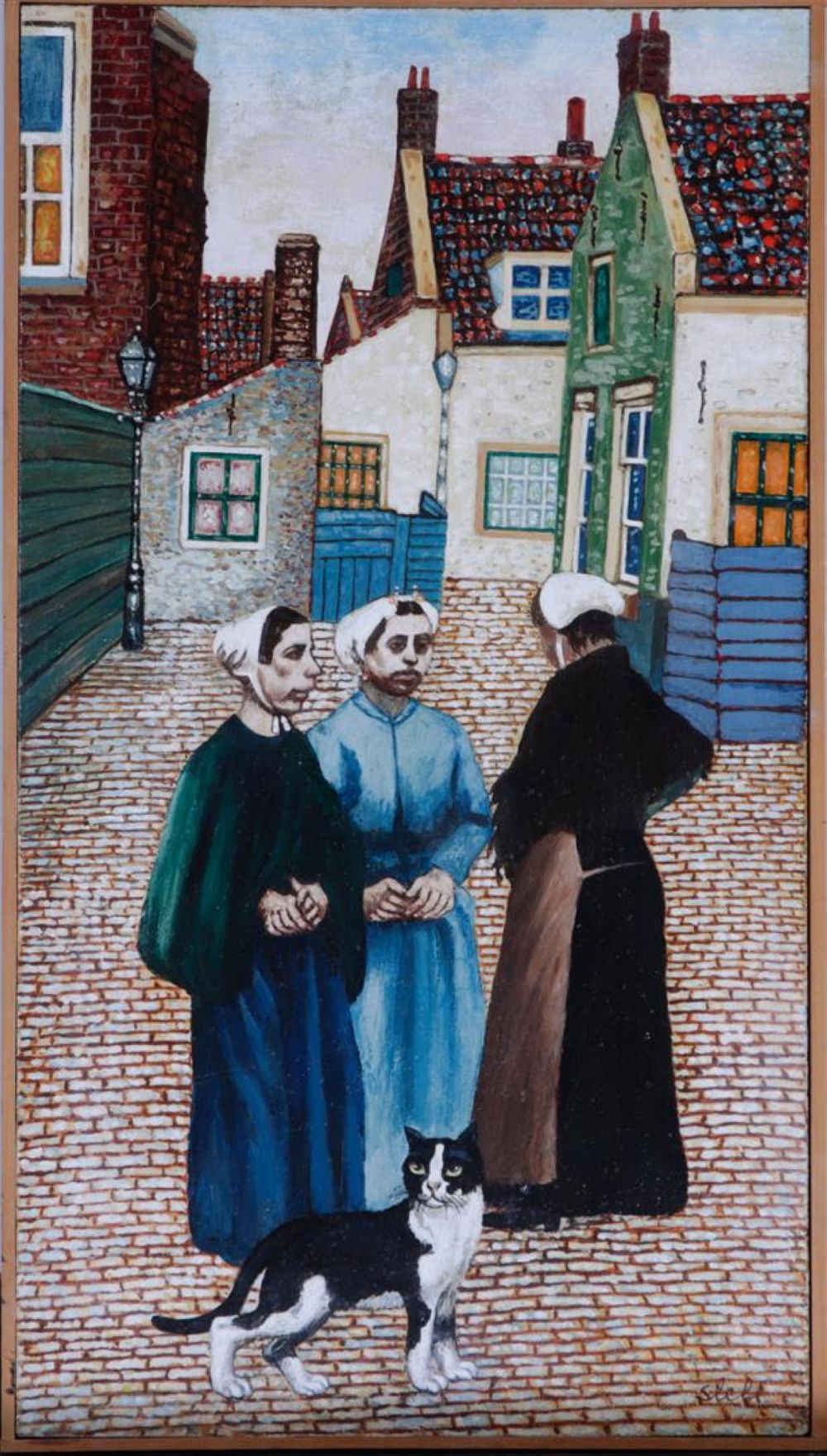 Ferry Slebe (1907-1994), Neighborhood chat in Scheveningen, signed (lower right), and signed again, annotated and dated '83 (verso), oil on panel. Provenance: obtained directly from the artist by the parents of the current owner, then by inheritance.