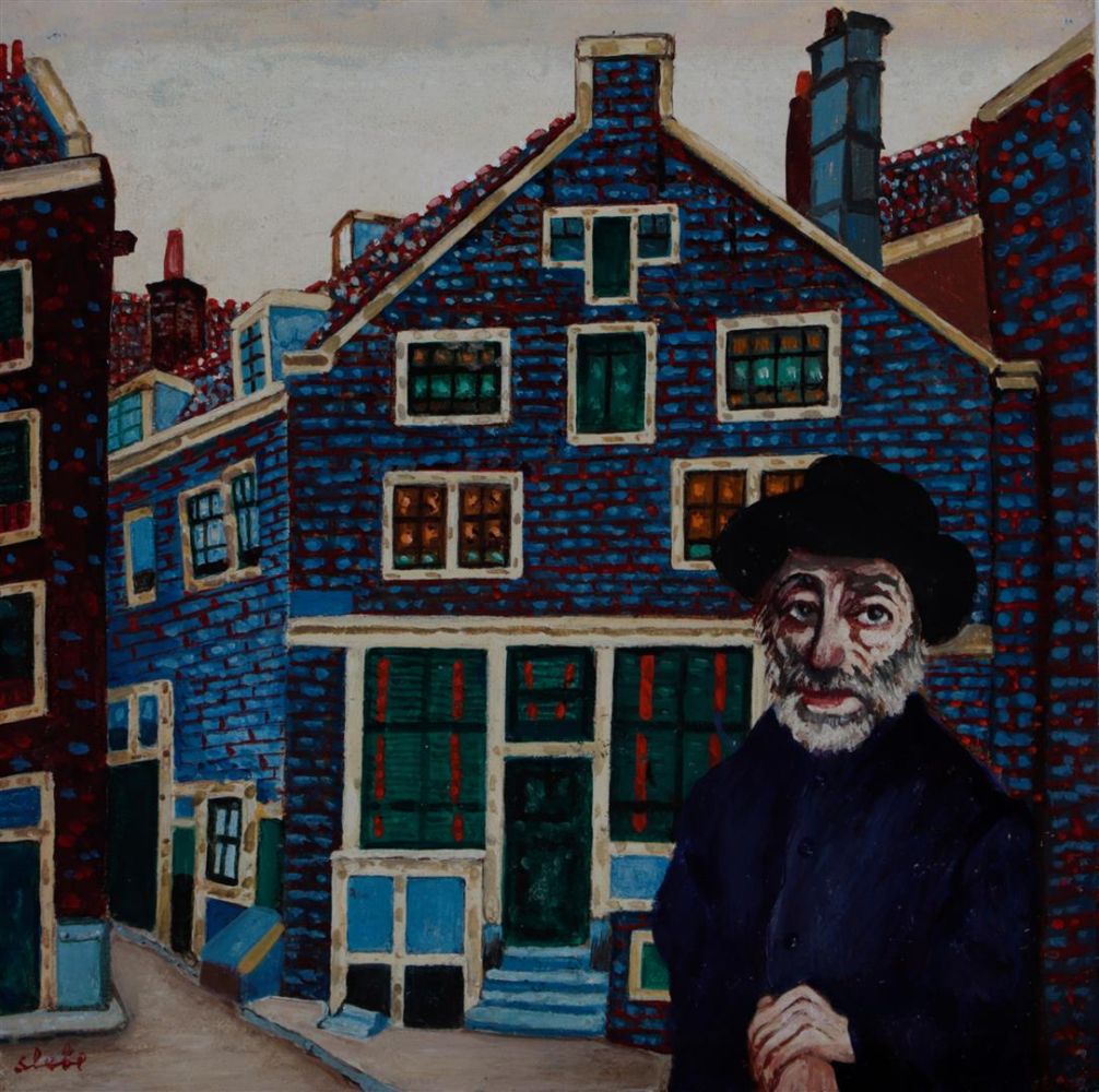 Ferry Slebe (1907-1994), Cityscape with old man, signed (lower left), and...