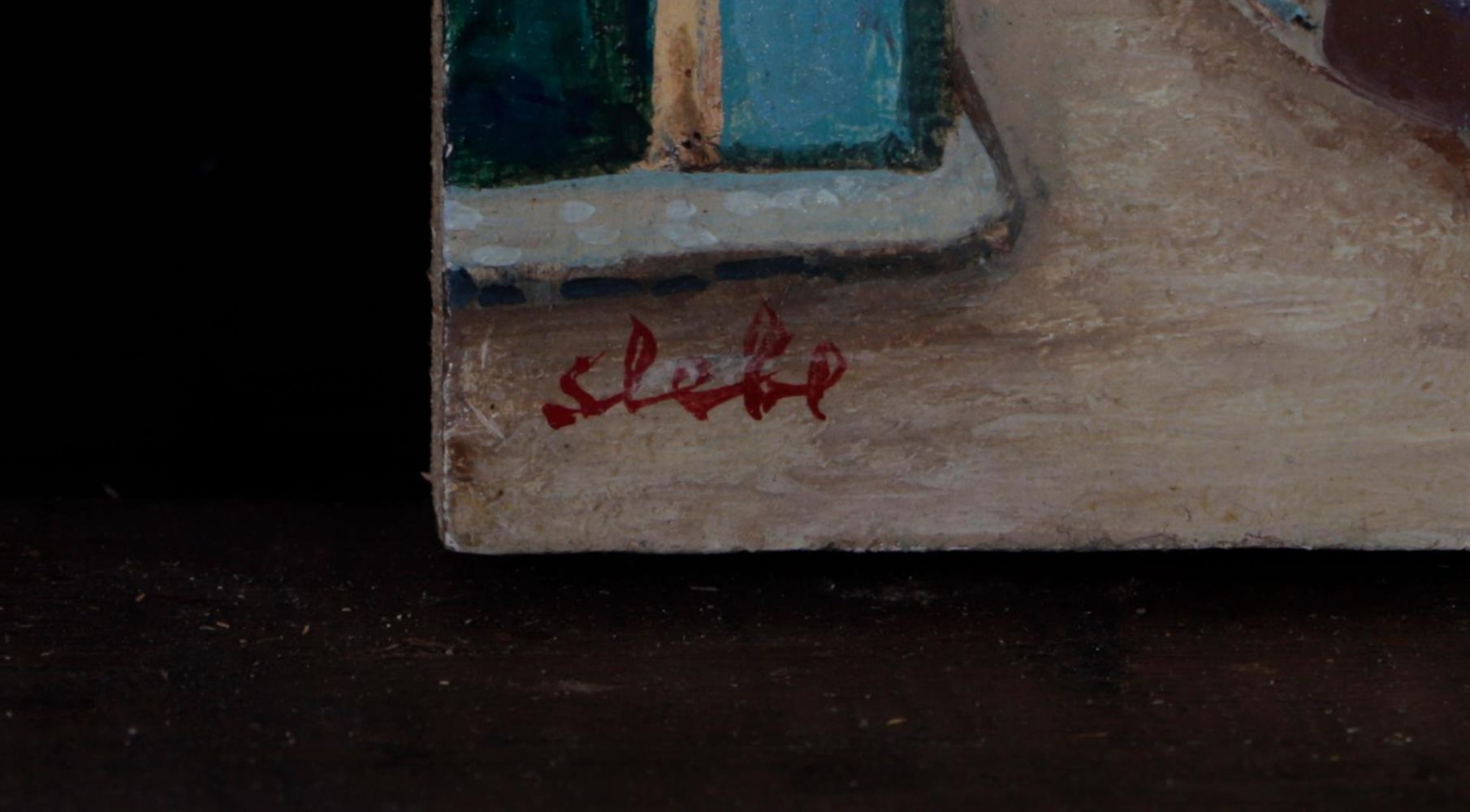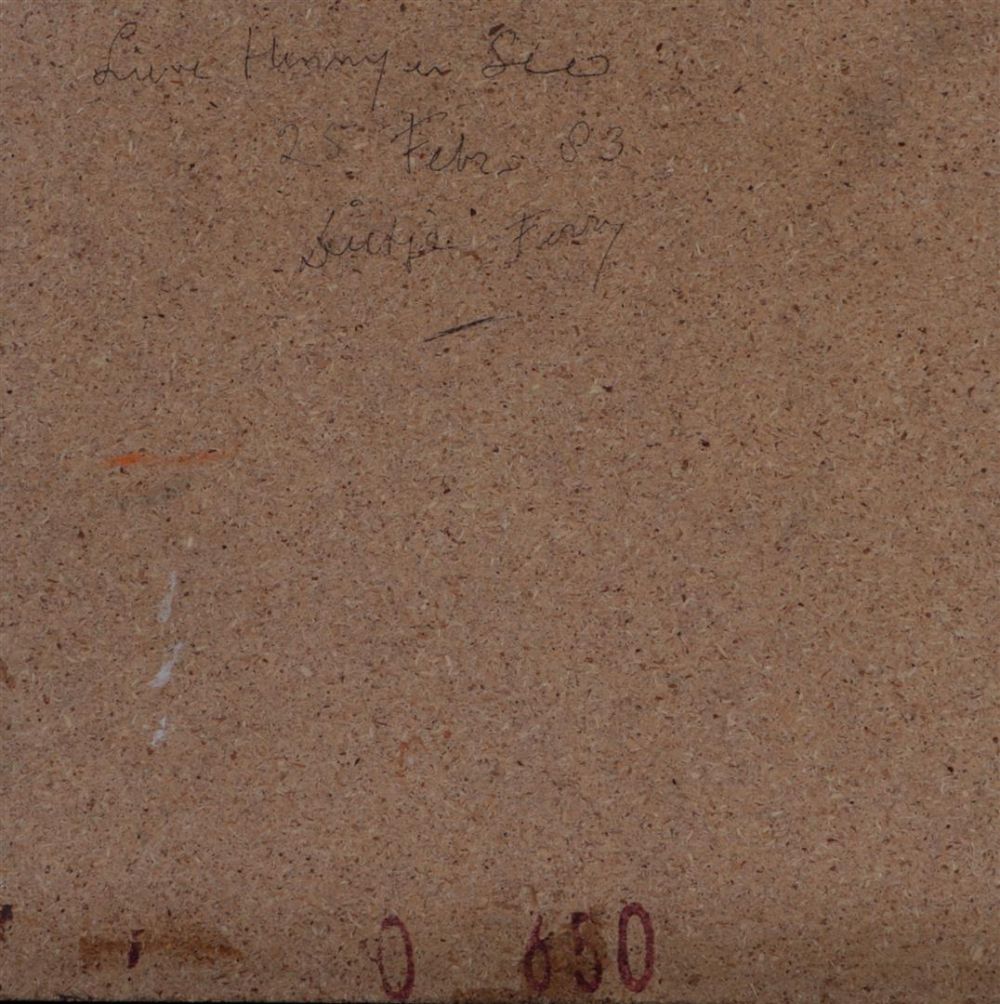 Ferry Slebe (1907-1994), Cityscape with old man, signed (lower left), and signed again, dated '83 and annotated and with dedication (verso), oil on panel. Provenance: obtained directly from the artist by the parents of the current owner, then by inheritance.