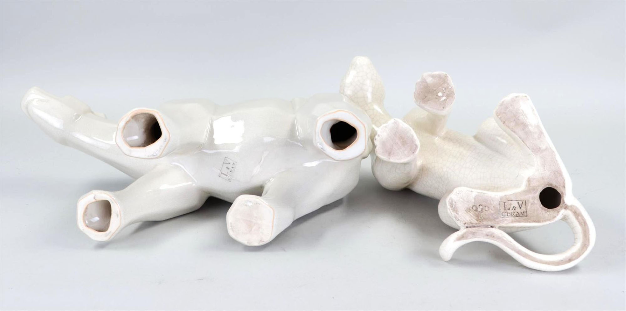 A lot consisting of (2) L & V Ceram shaped pieces representing a polar bear,...