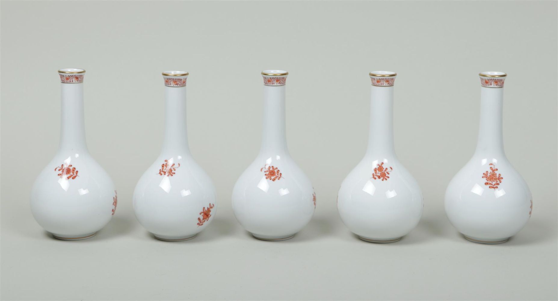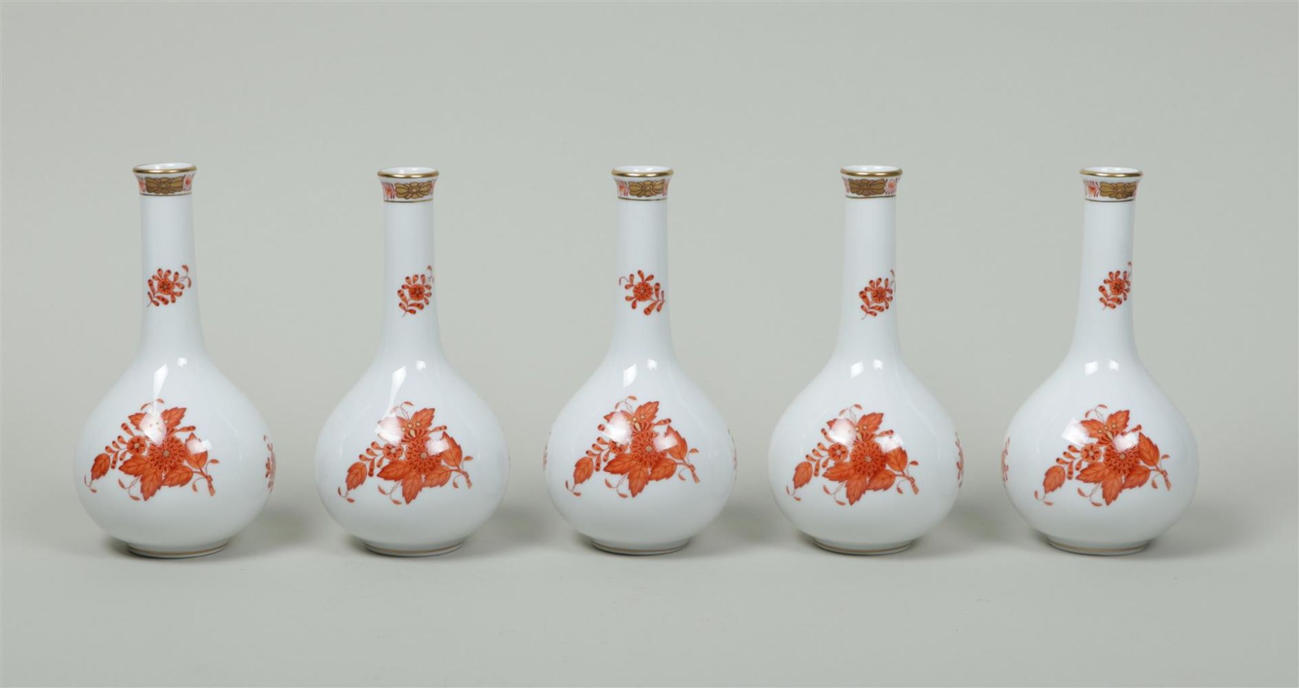 A set of five porcelain pipe vases in Apponyiorange decor. Herend, 20th century.