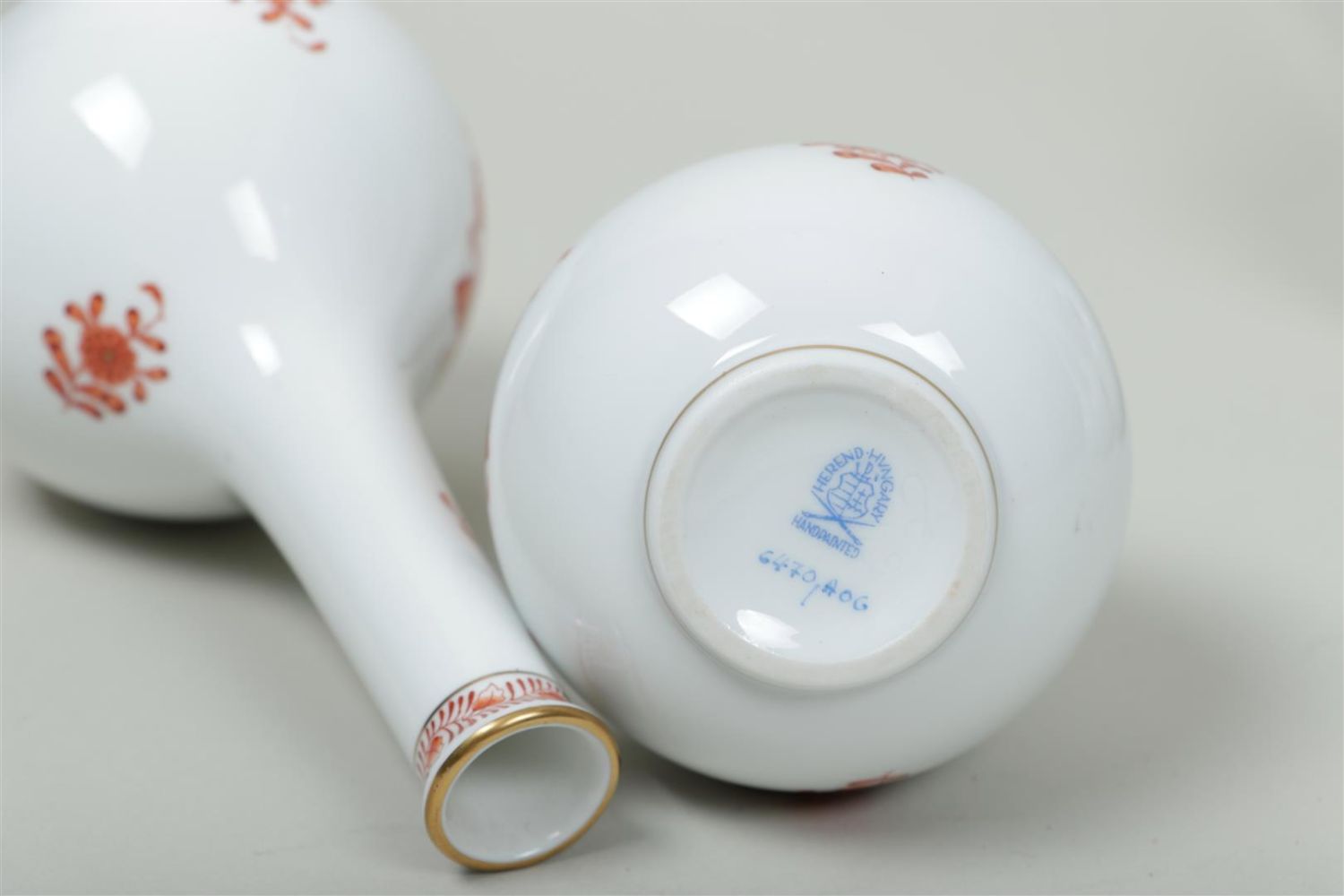 A set of five porcelain pipe vases in Apponyiorange decor. Herend, 20th...