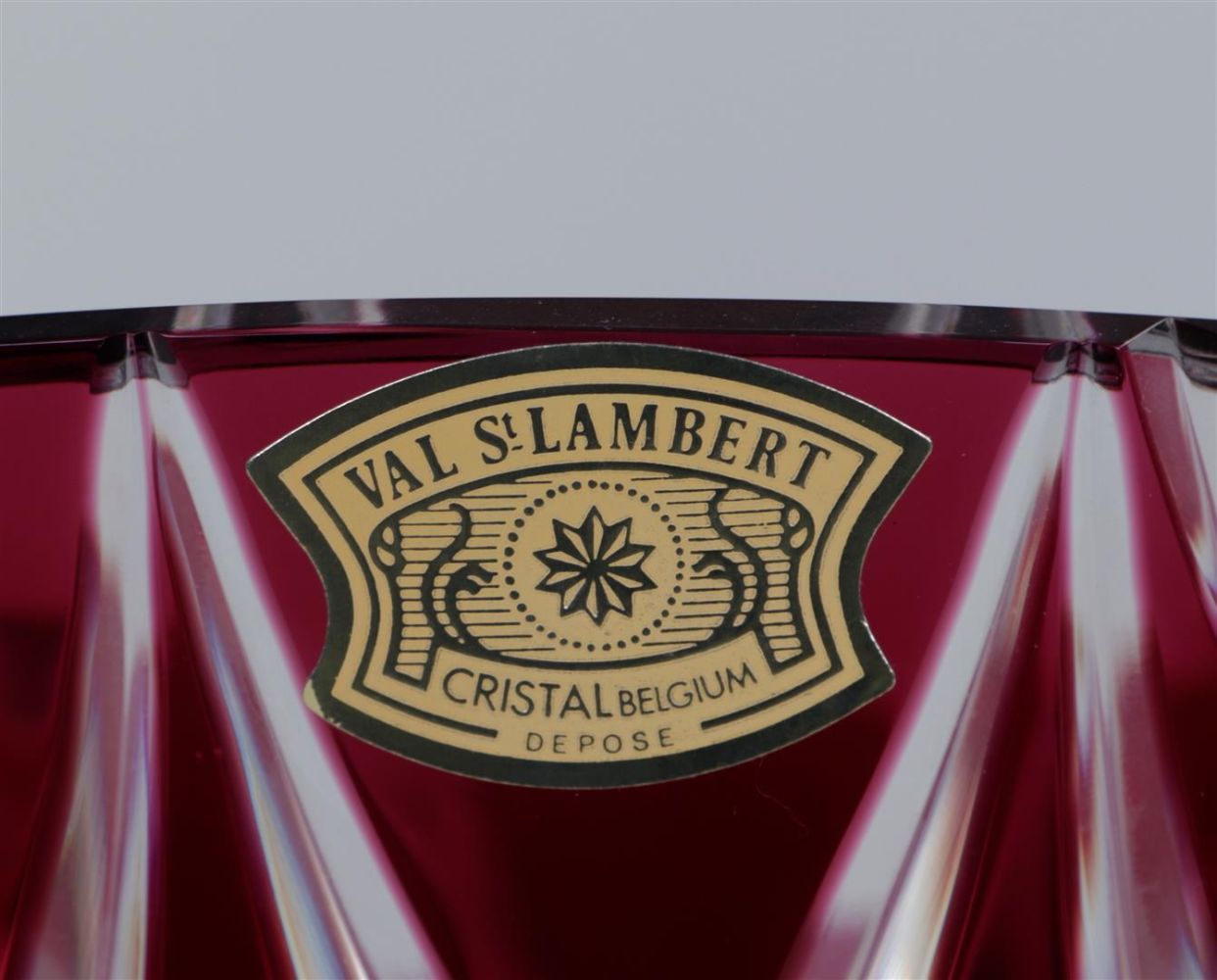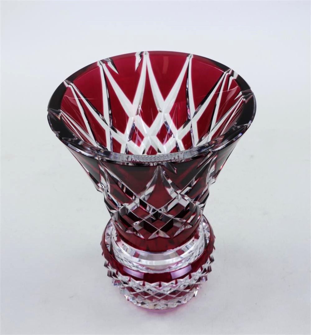 A large cut crystal, cranberry Val St. Lambert goblet vase, marked on the...