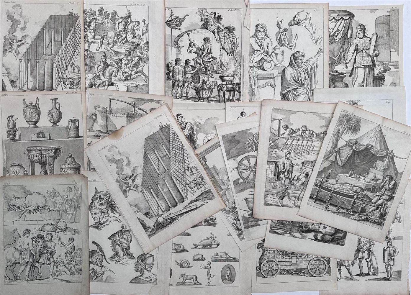 A large lot of various prints depicting scenes from mythology and the Bible. Mainly 18th century.