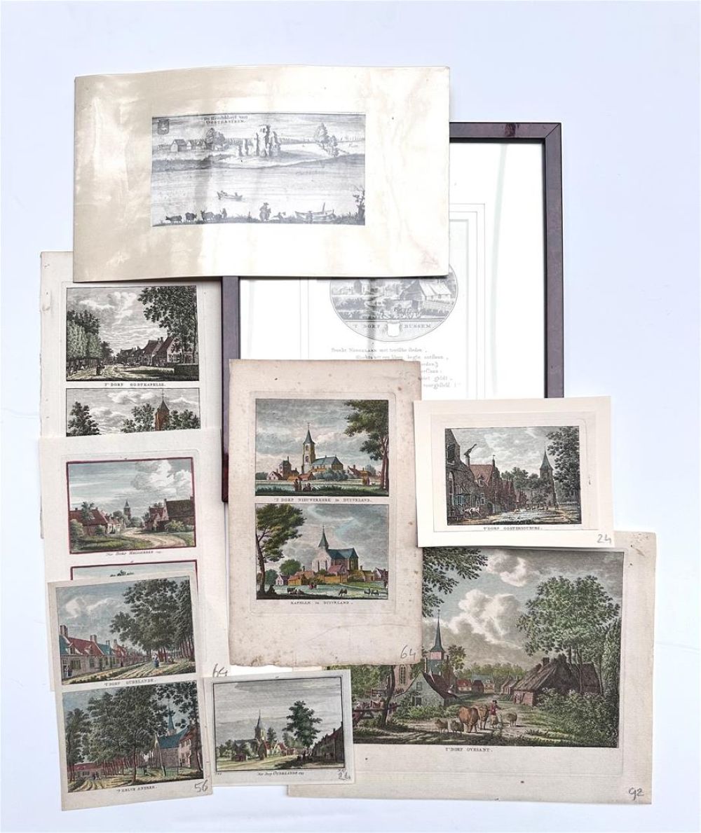 A lot of various hand-colored topographical prints including Bussum and Zeeland.