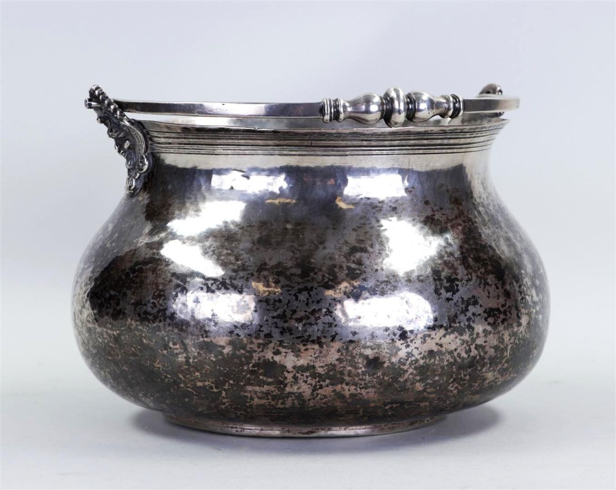 A rare silver holy water vessel, marked on the handle and base. Southern Europe 18th century.