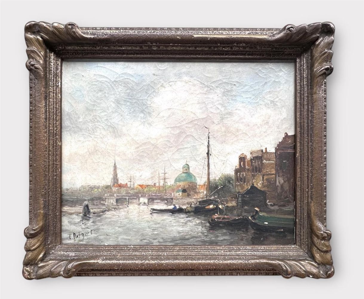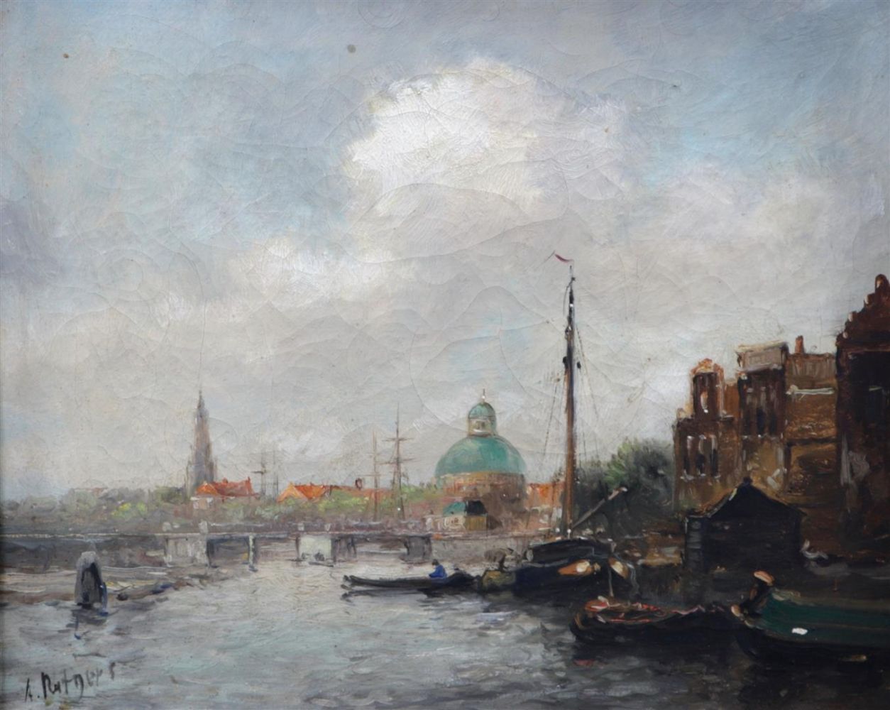Anton Rutgers (Velp 1880 - 1949 Bussum), View of the Singel, with the Koepelkerk, Amsterdam, signed (lower left), oil on canvas, 24 x 30 cm.