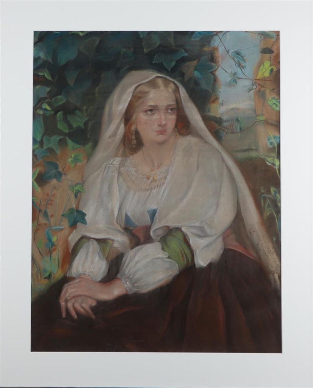 Henry Wallis RWS (London 1830 - 1916), Portrait of a young woman in Northern Italian dress, possibly Mary Ellen, signed and dated '1866' (centre left), pastel on paper, damage to the upper edge.