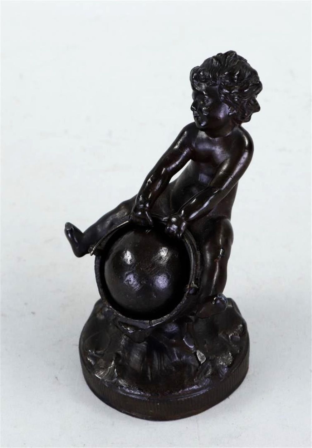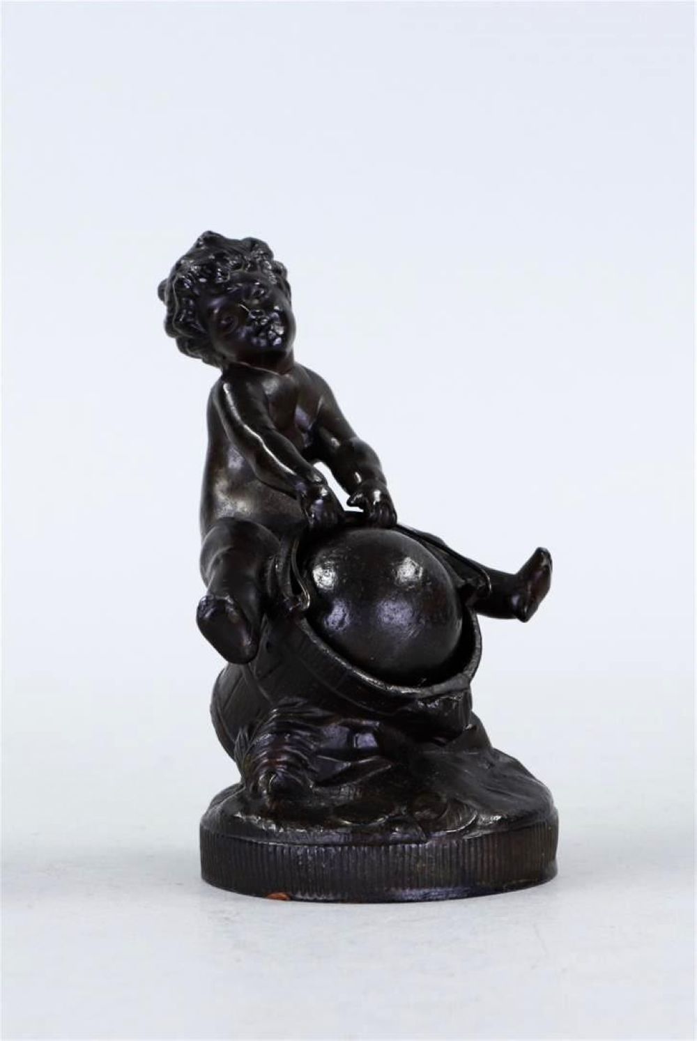 A patinated alloy statuette of a boy with a ball.H. 12 cm.