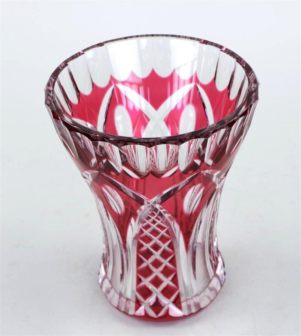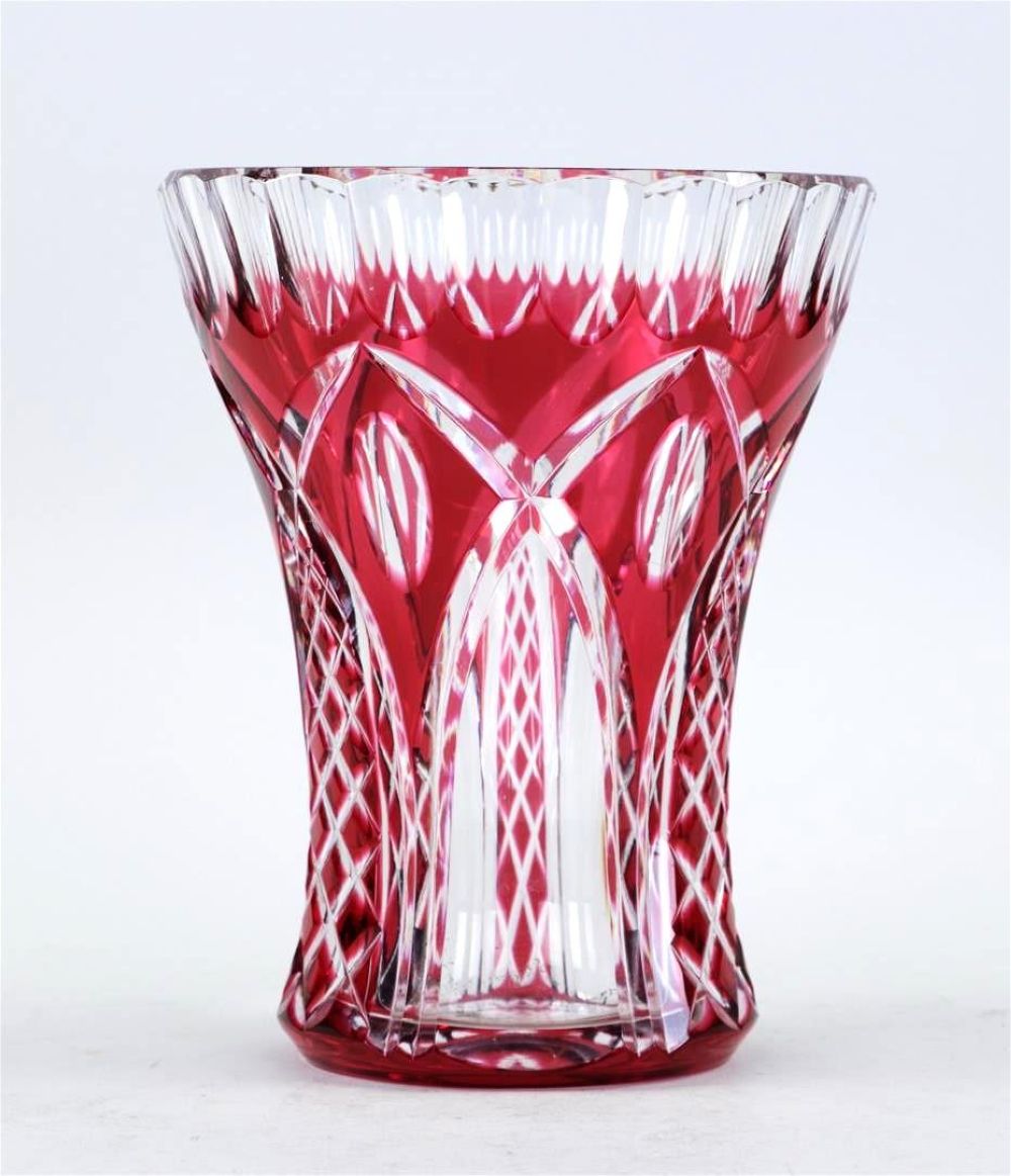 A cranbarry, Val St. Lambert, cut crystal beaker vase.H.: 20 x Diam.: 16 cm.