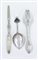 A lot of three silver objects consisting of a sugar scoop, marrow drill and fork. 105 grams.