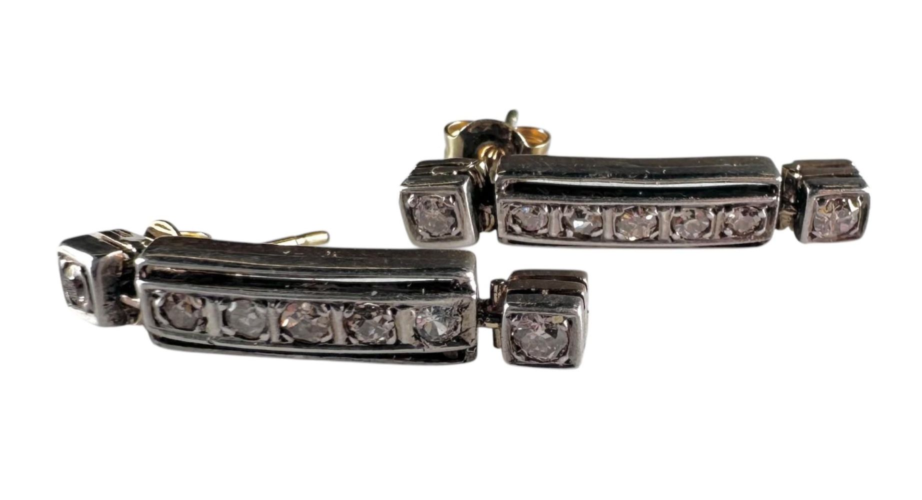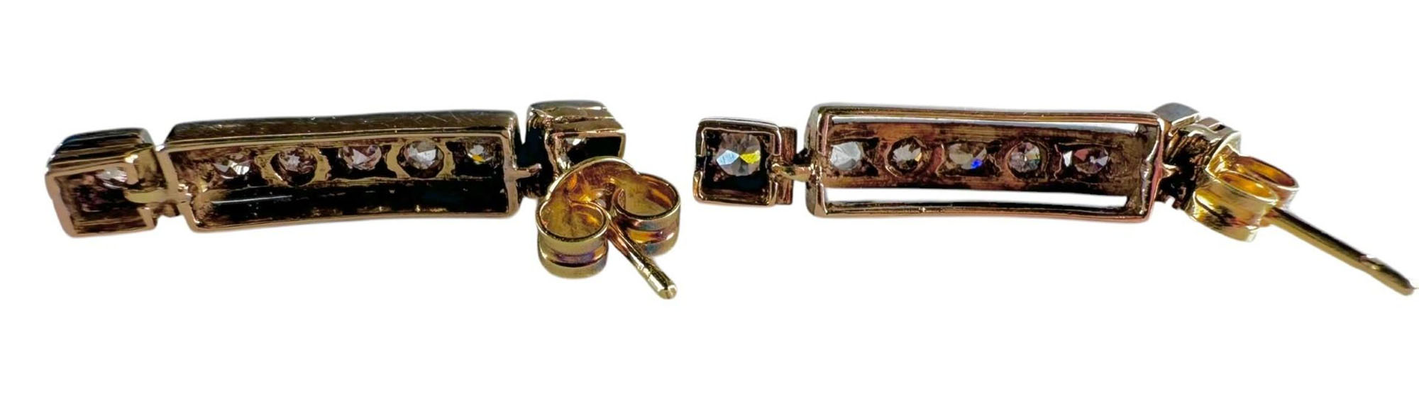 The earrings feature 13 single cut light brown diamonds of approx. 4 of 0.05ct, 9 of 0.025ct. And 1 brilliant cut zirconia (transparent). With a total weight of approx. 0.42ct.