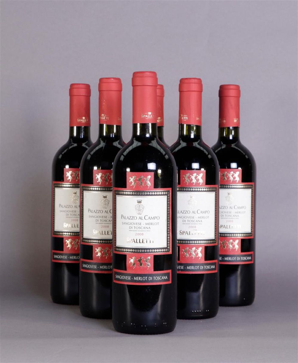 6x 0.75 liter Spalletti Palazzo Al Campo Rosso 2008.