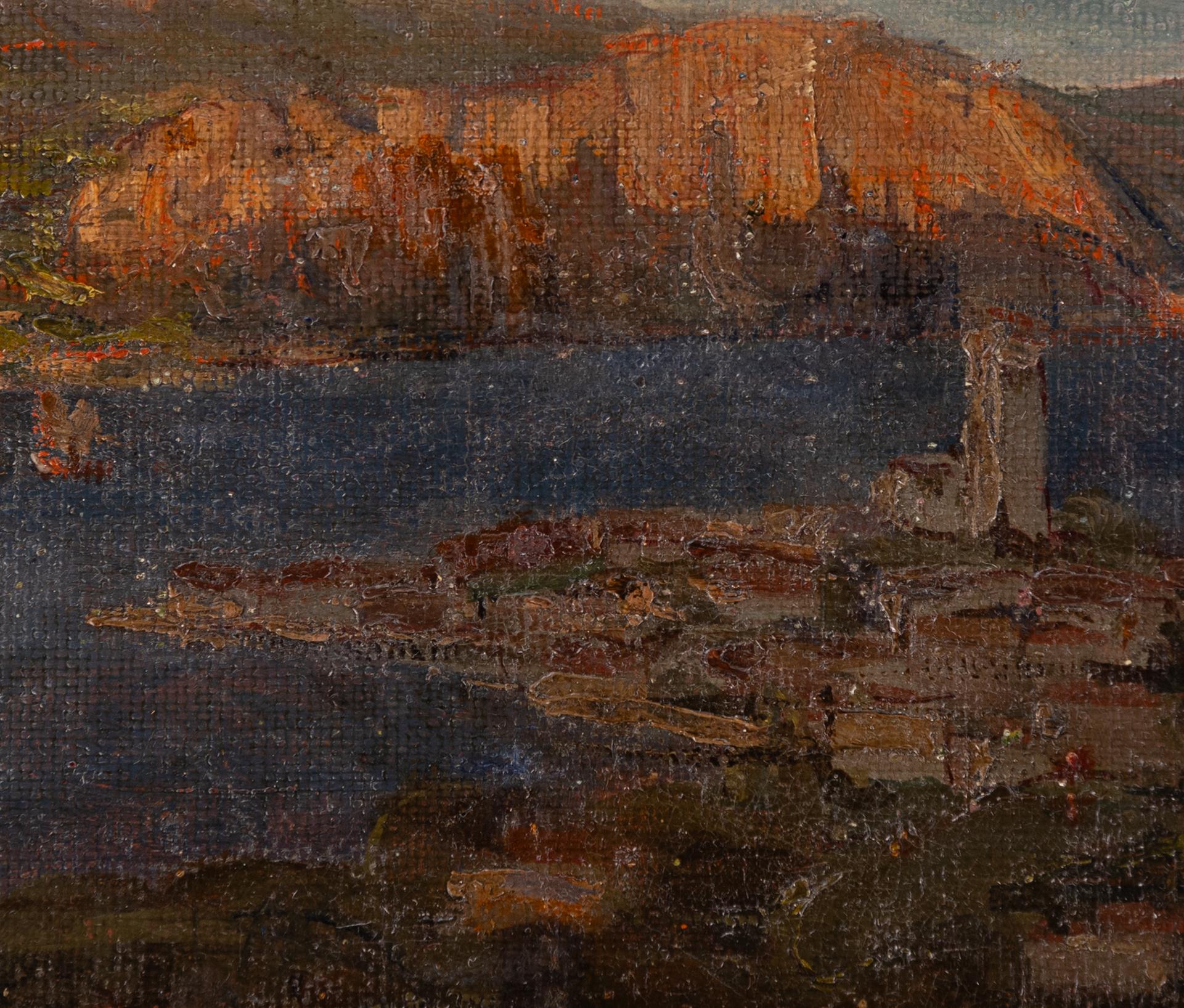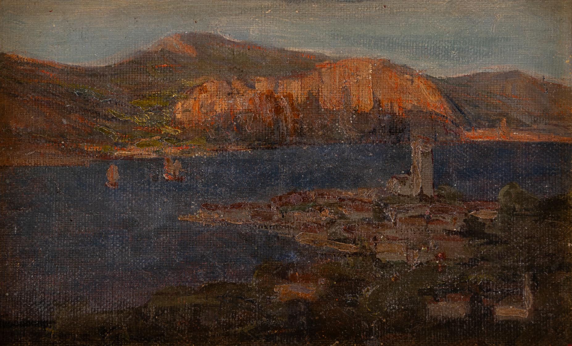 Giuseppe Menato - Lago Di Garda Malcesine - Bovolone VE 1874 - Verona 1962 - Olio su tela cm 18x28 n