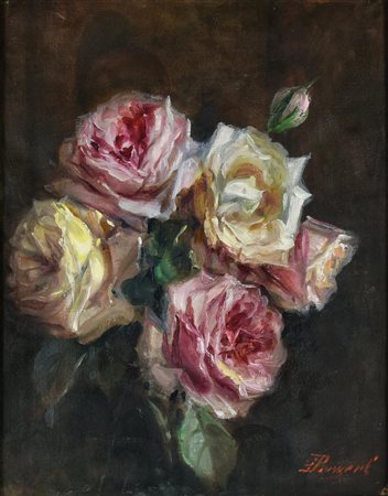 Licinio Barzanti, (1857 - 1944) ROSE olio su tela, cm 39x28,5 firma