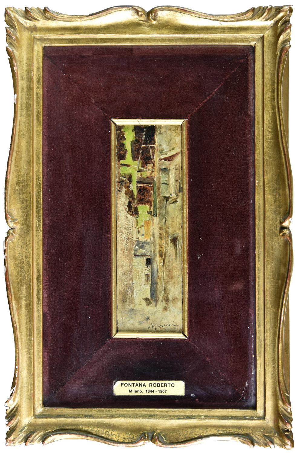 Roberto Fontana, (1844 - 1907) SENZA TITOLO olio su tavola, cm 14,5x4,5 firma