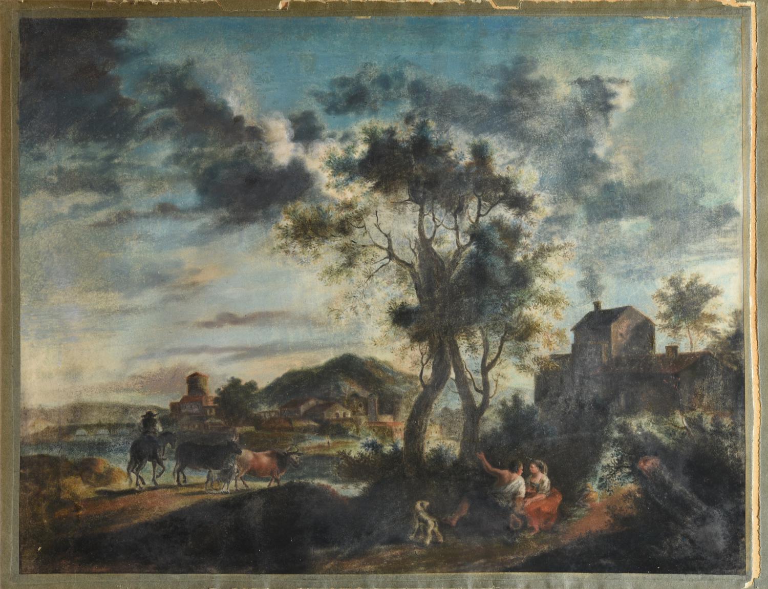 SCENA CAMPESTRE, XIX secolo acquerello su carta, cm 37,5x48,5 Provenienza...