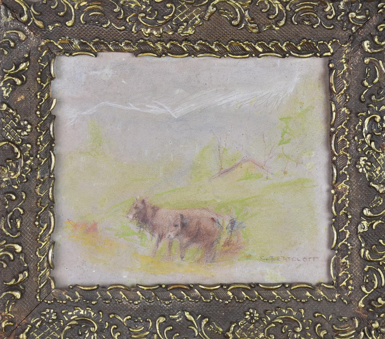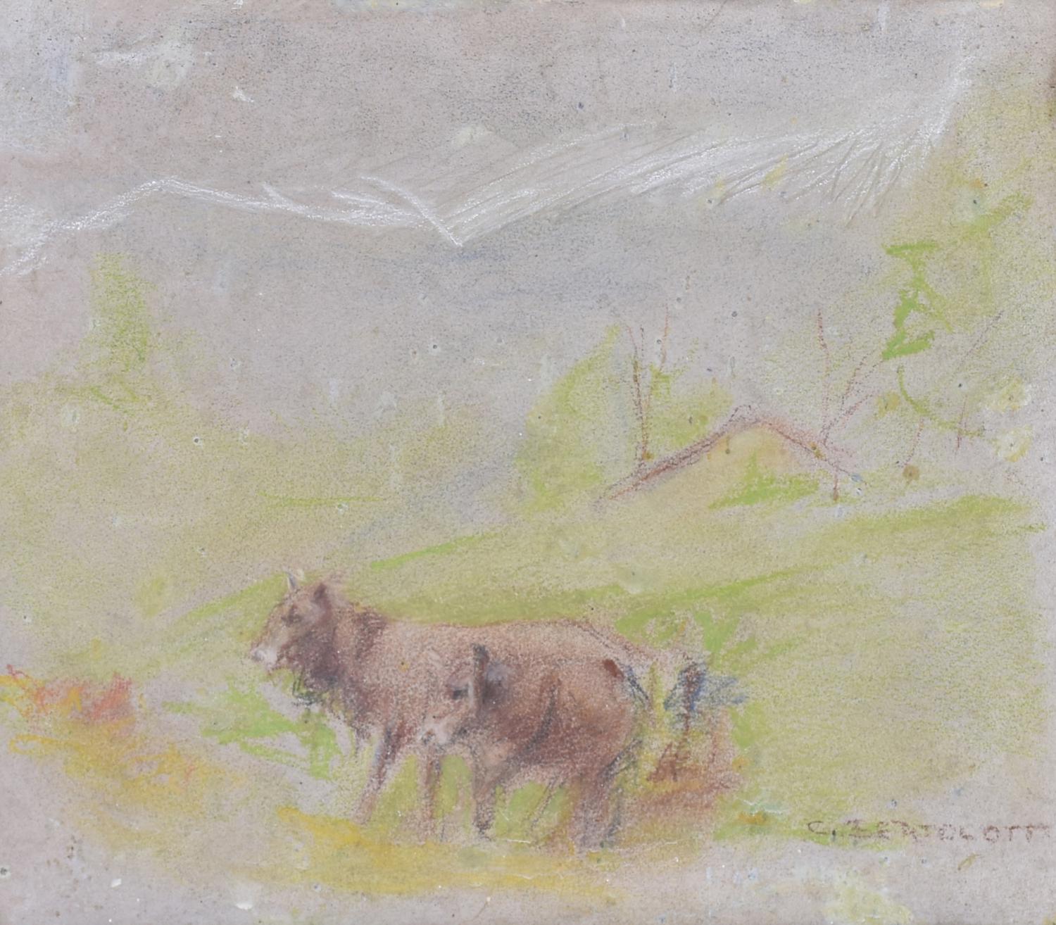Cesare Bertolotti, (1854 - 1932) MUCCHE ALL'ALPE pastello su carta, cm 24x26...