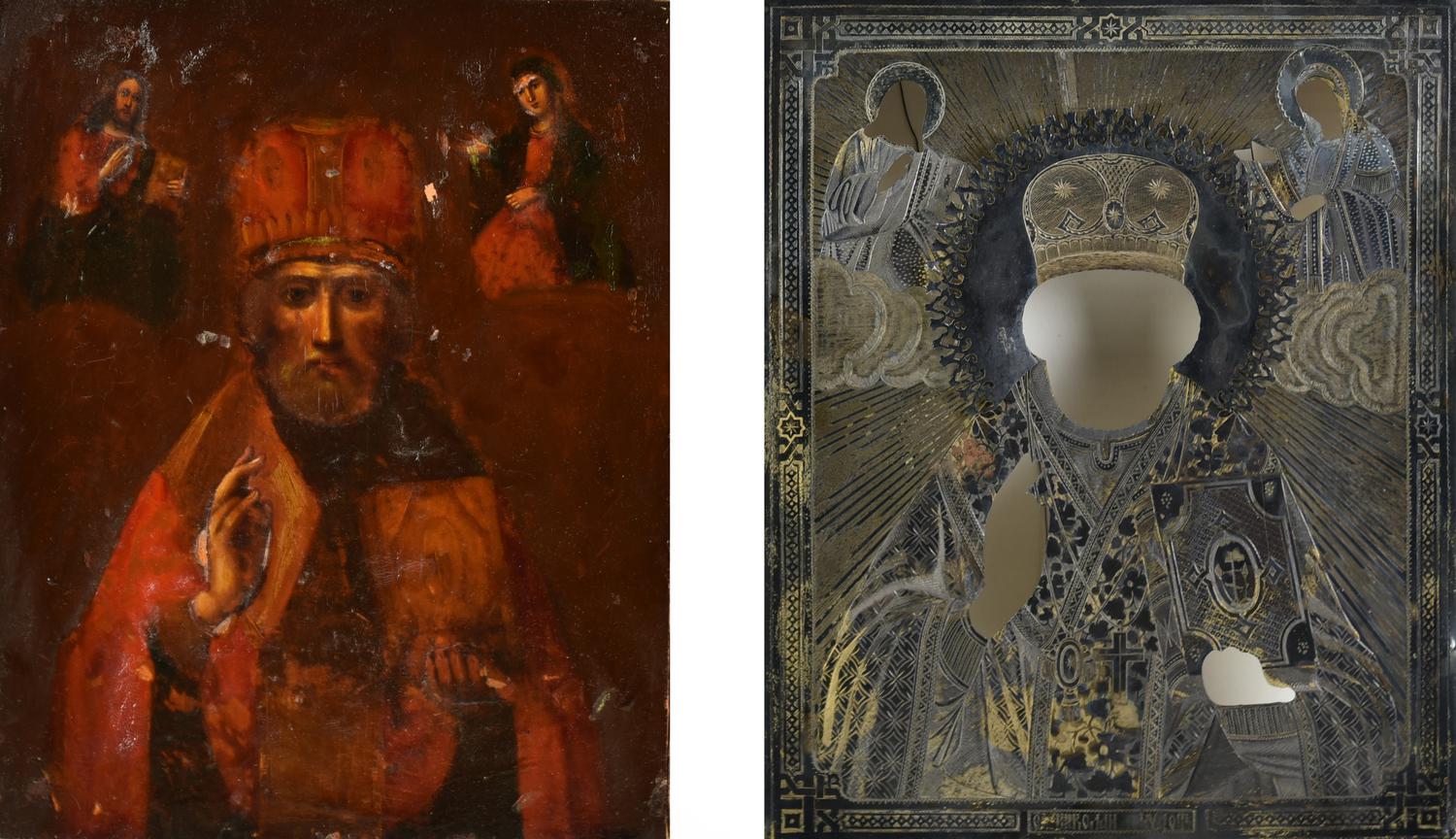 ICONA RUSSA CON SAN NICOLA TAUMATURGO, sec. metà del XIX secolo