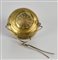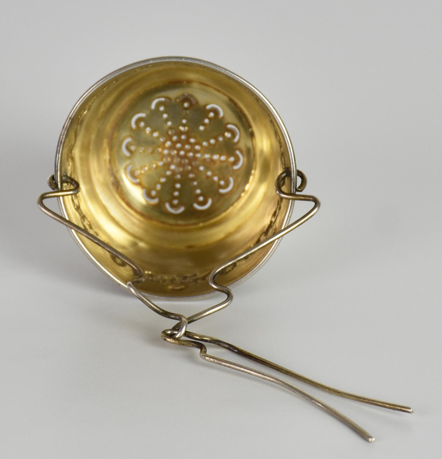 argento 950/1000, decorazione a cesello, fornito di forcella per essere infilato nel beccuccio della teiera; marchio di garanzia della città di Parigi