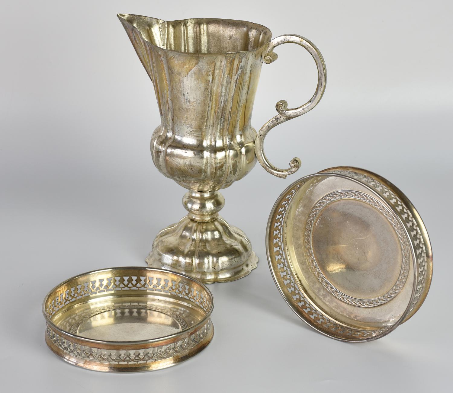 LOTTO DI TRE OGGETTI IN SHEFFIELD costituito da: Versatoio , Italia primi del...