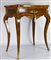 palissandro, struttura elegante con intarsi e bronzi dorati; cassettino frontale e specchio all'interno della ribalta
