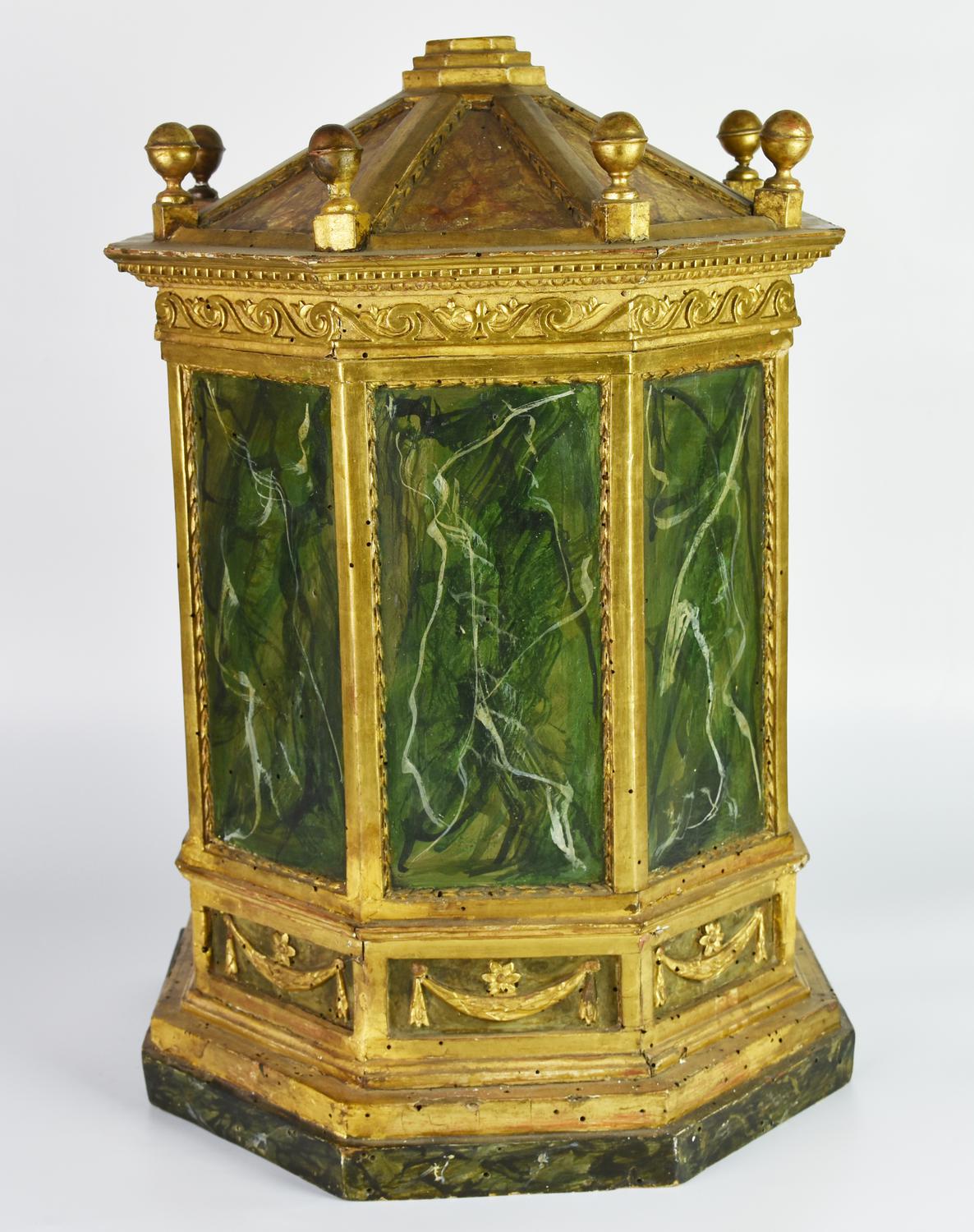 EDICOLA, Italia inizio XVIII secolo edicola a base esagonale in legno con...