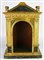 edicola a base esagonale in legno con apertura ad arco sul fronte, laccata finto marmo verde e decori in legno intagliato a candelabra dorati