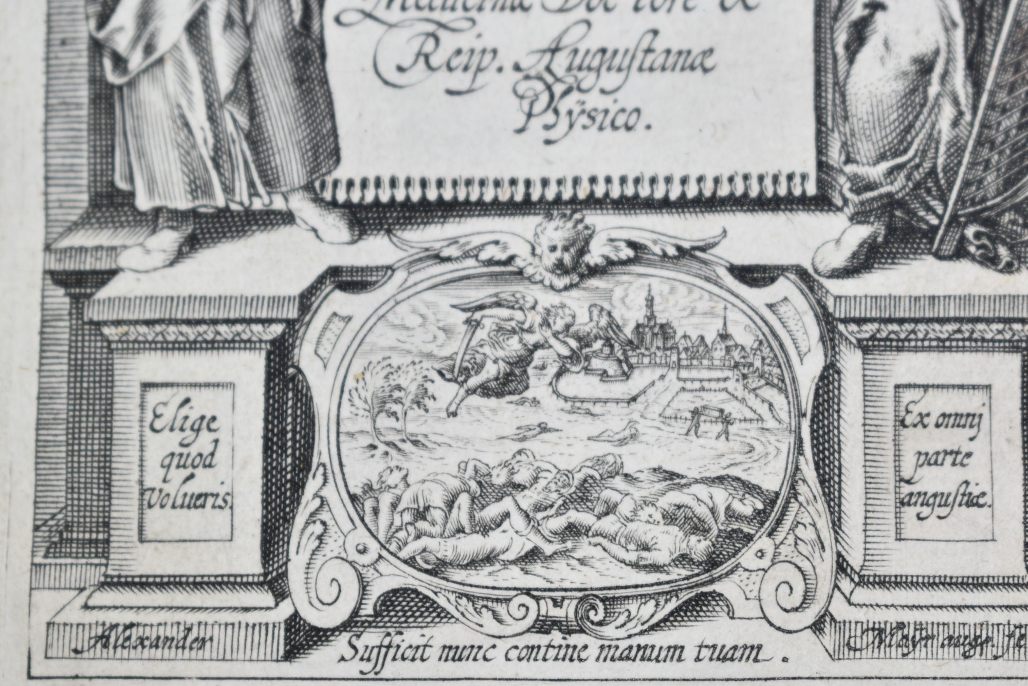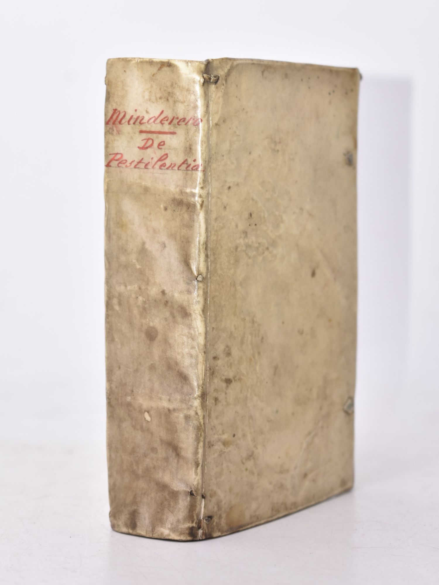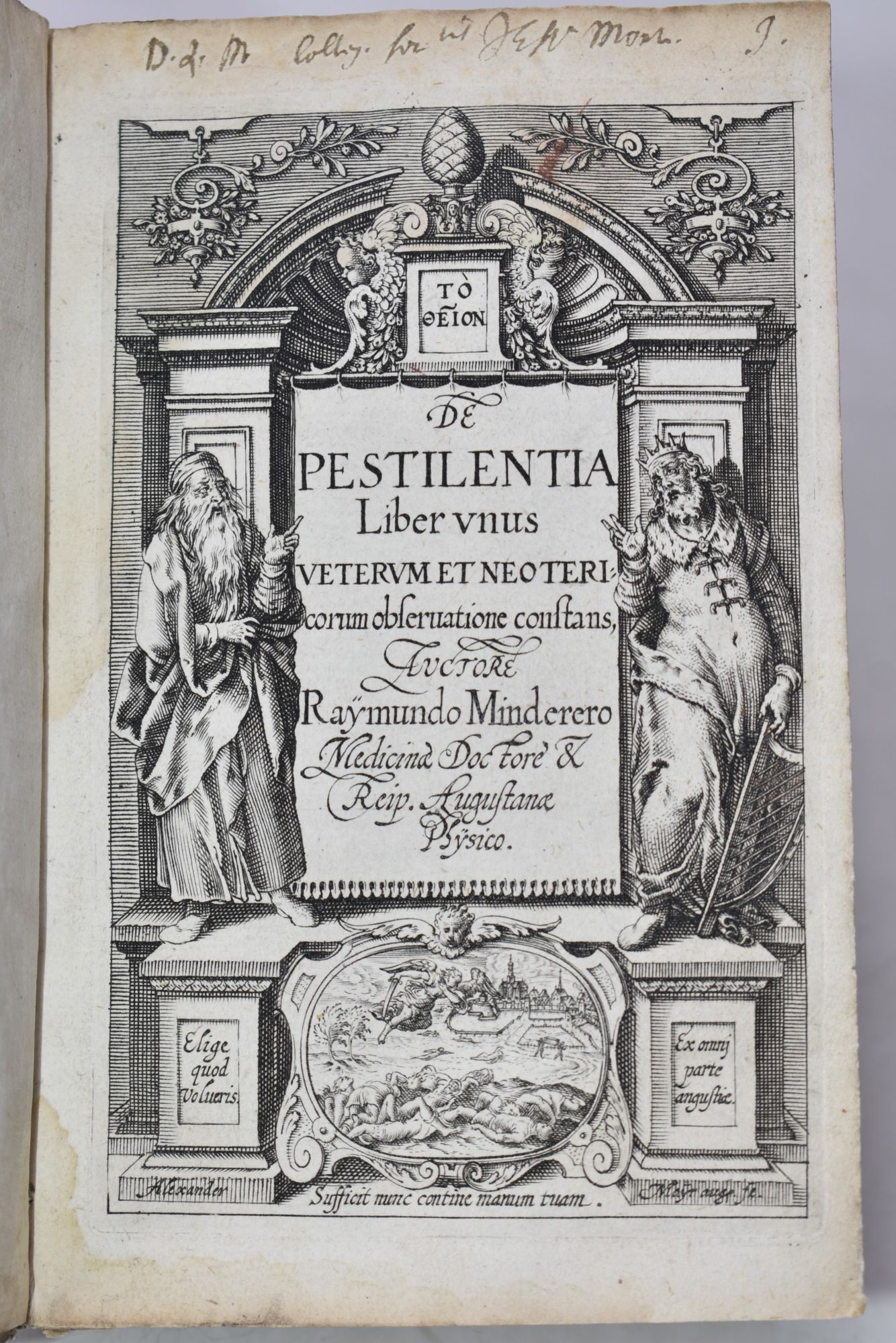 Minderer, Raymund: DE PESTILENTIA LIBER VNUS VETERUM ET NEOTERICORUM OBSERUATIONE CONSTANS, AUCTO RE RAYMUNDO MINDERERO MEDICINAE DOCTORE & REIP. AUGUSTANAE PHYSICO. [Augsburg], [1608].