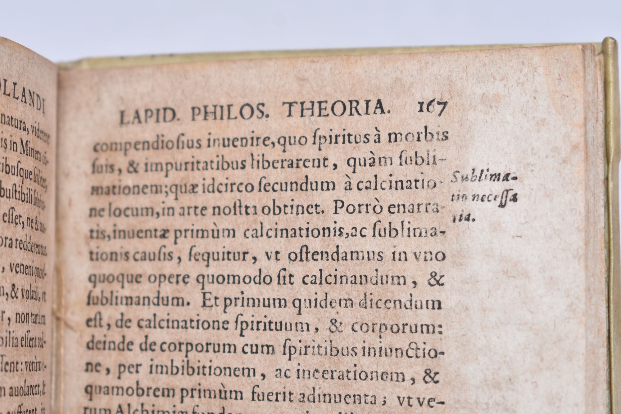 Opera dell’alchimista francese G. B. Penot (1519-1617), trattato di chimica, alchimia e medicina spesso omesso da bibliografie e cataloghi nonostante possa vantare ampie sezioni dedicate alla Pietra Filosofale. Rara edizione originale svizzera; stampata sul frontespizio una vignetta xil. (un cerchio con un triangolo e un quadrato all’interno, e motto: Ordo naturae omnia ab uno omnia ad unum); testatine e iniziali xil. incise nel testo. Esemplare brunito.