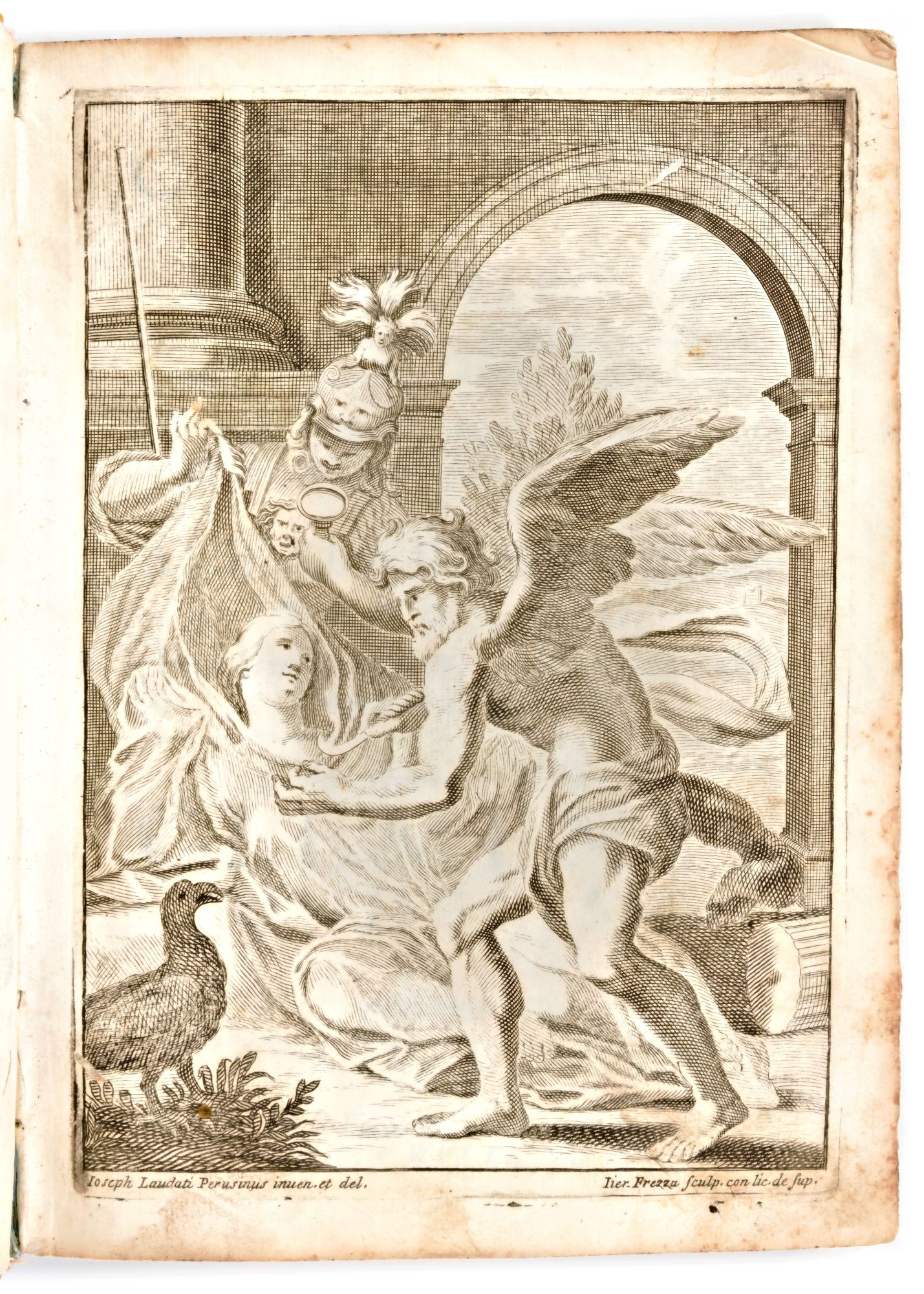 Formato in-4°, mm. 215x155, pp. (20), 339, LXXXVIII, 58. Esemplare mancante della Tavola XI e delle carte E2, E3 (descrizione tavola XI). Rilegatura coeva in piena pergamena con titolo manoscritto al dorso. Strappi marginali con perdita di testo alla carta con dedicatoria a Clemente XI e alla carta C1. Restauro alla Tavola 1 (spiegazzata) e alla carta a2 con parte del testo reintegrato a mano. Sporadiche fioriture.