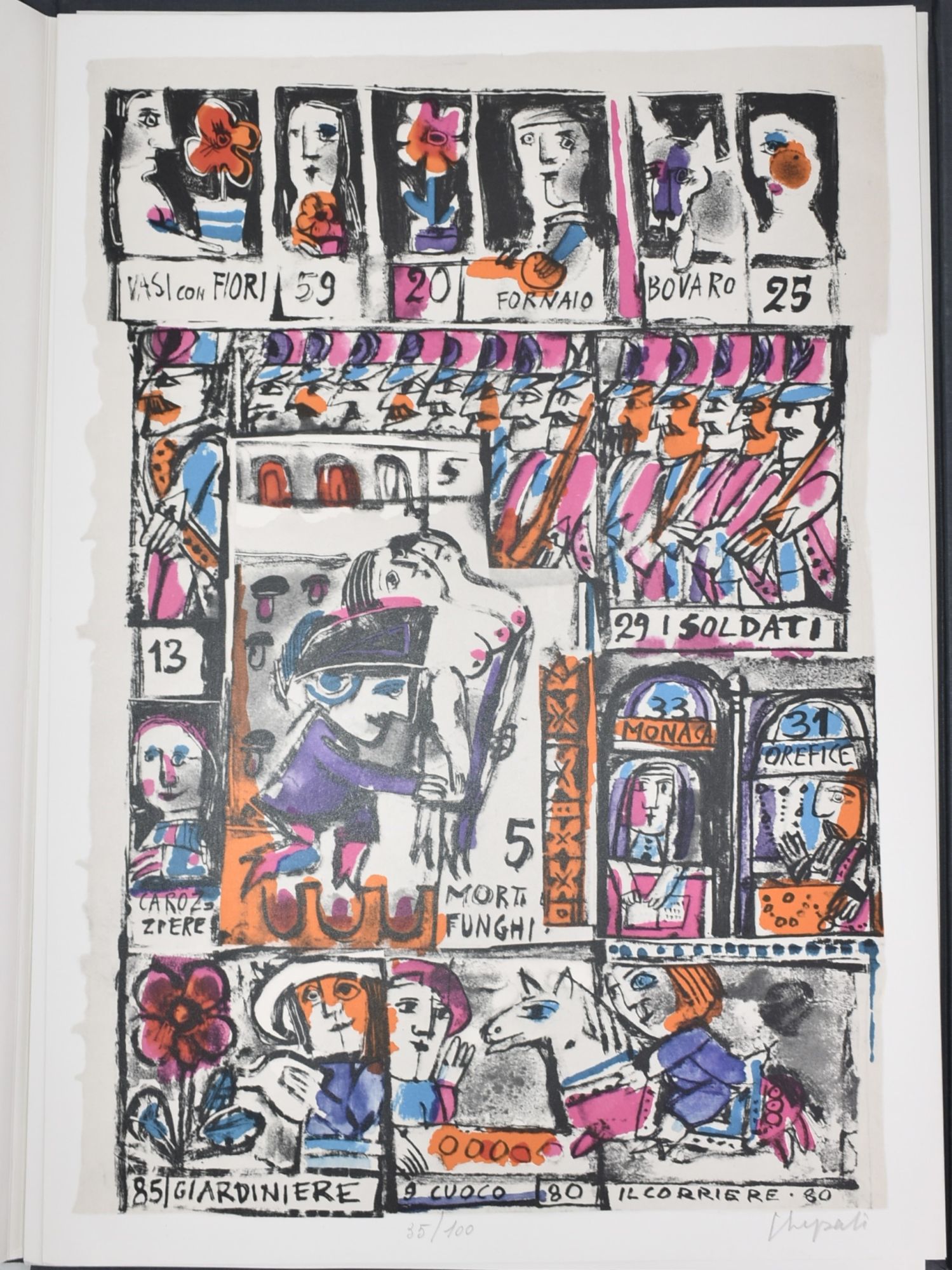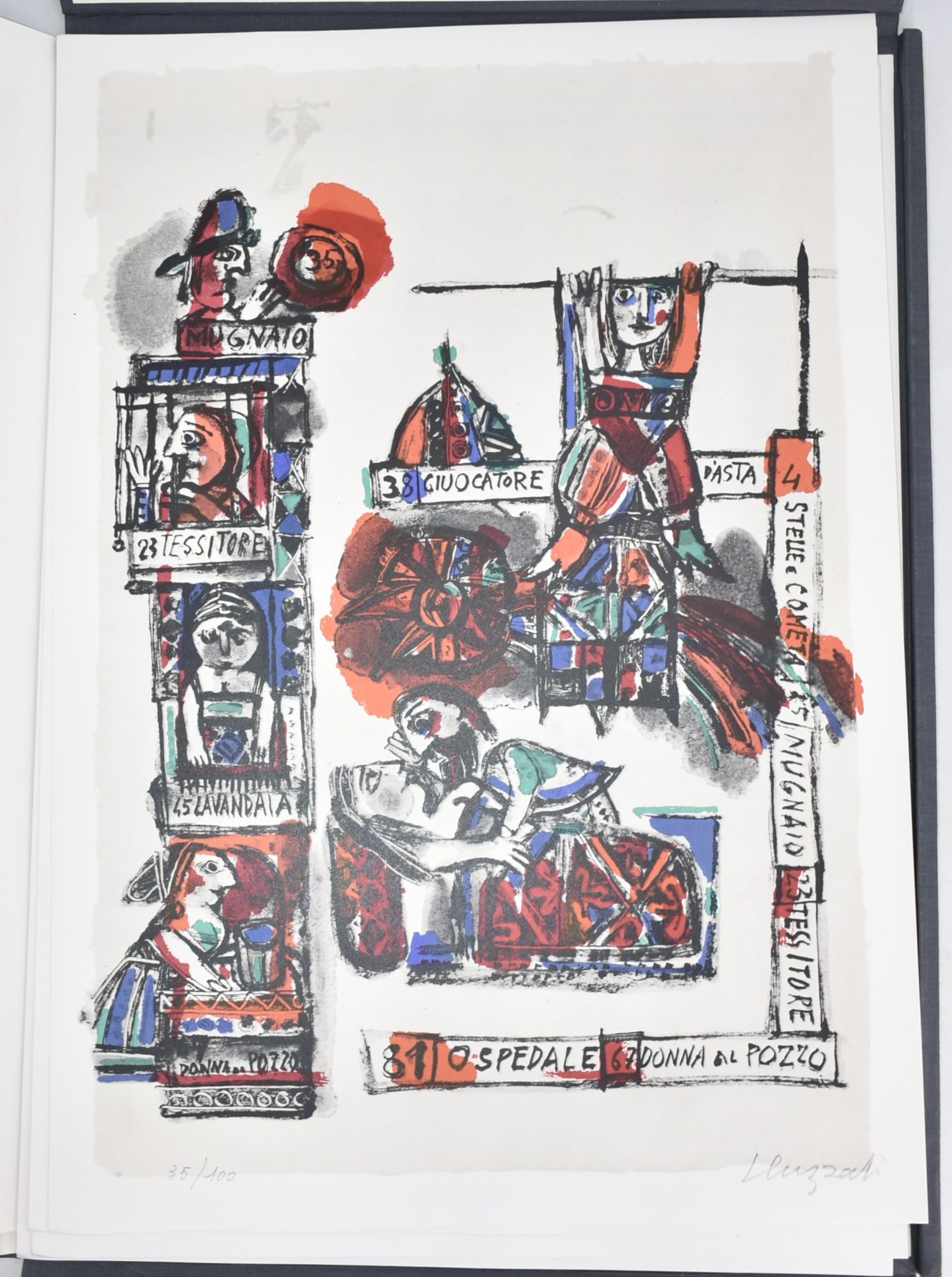 [Libro d'Artista] EMANUELE LUZZATI - LA CABALA DEL LOTTO 10 Litografie a Colori Firmate Numerate