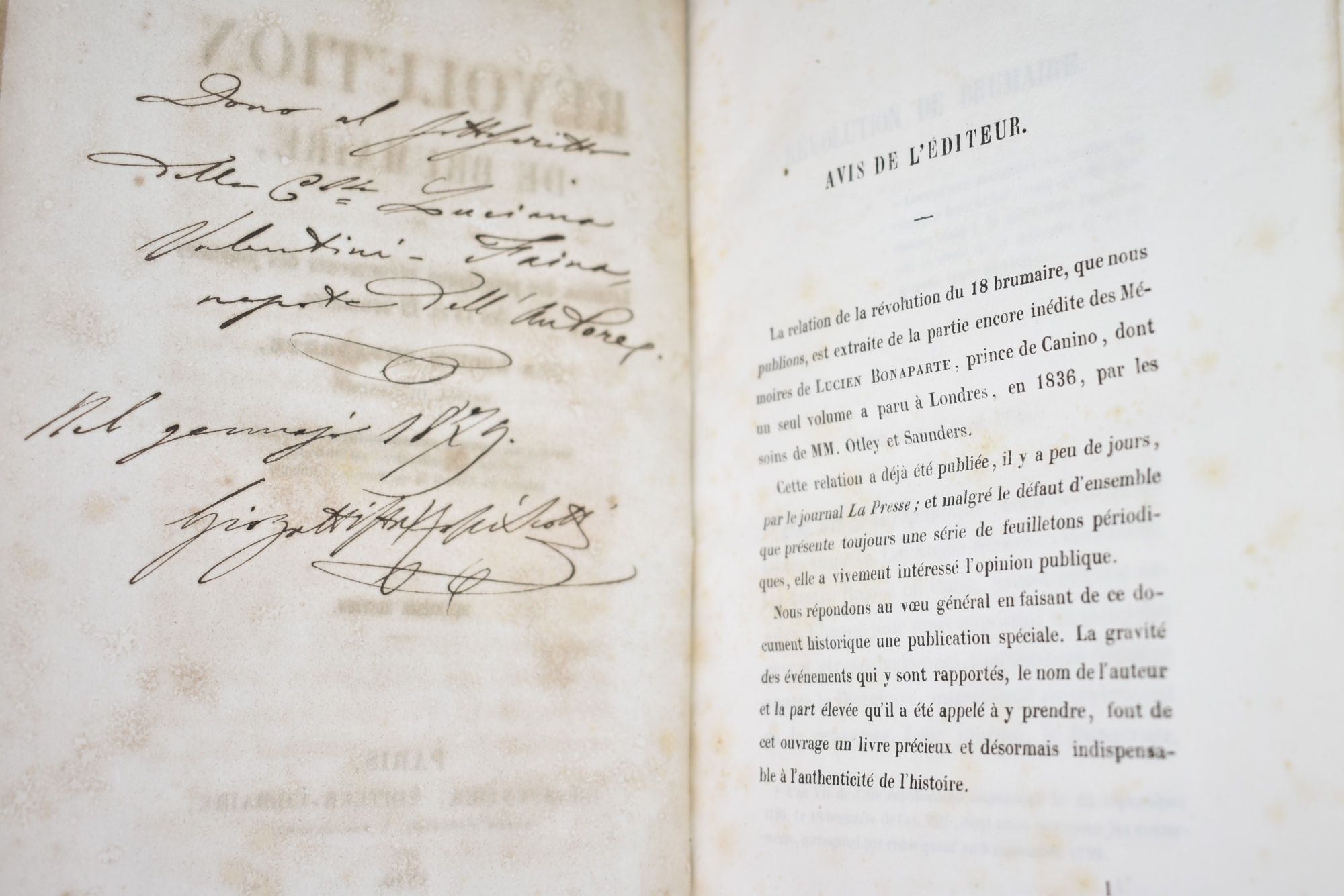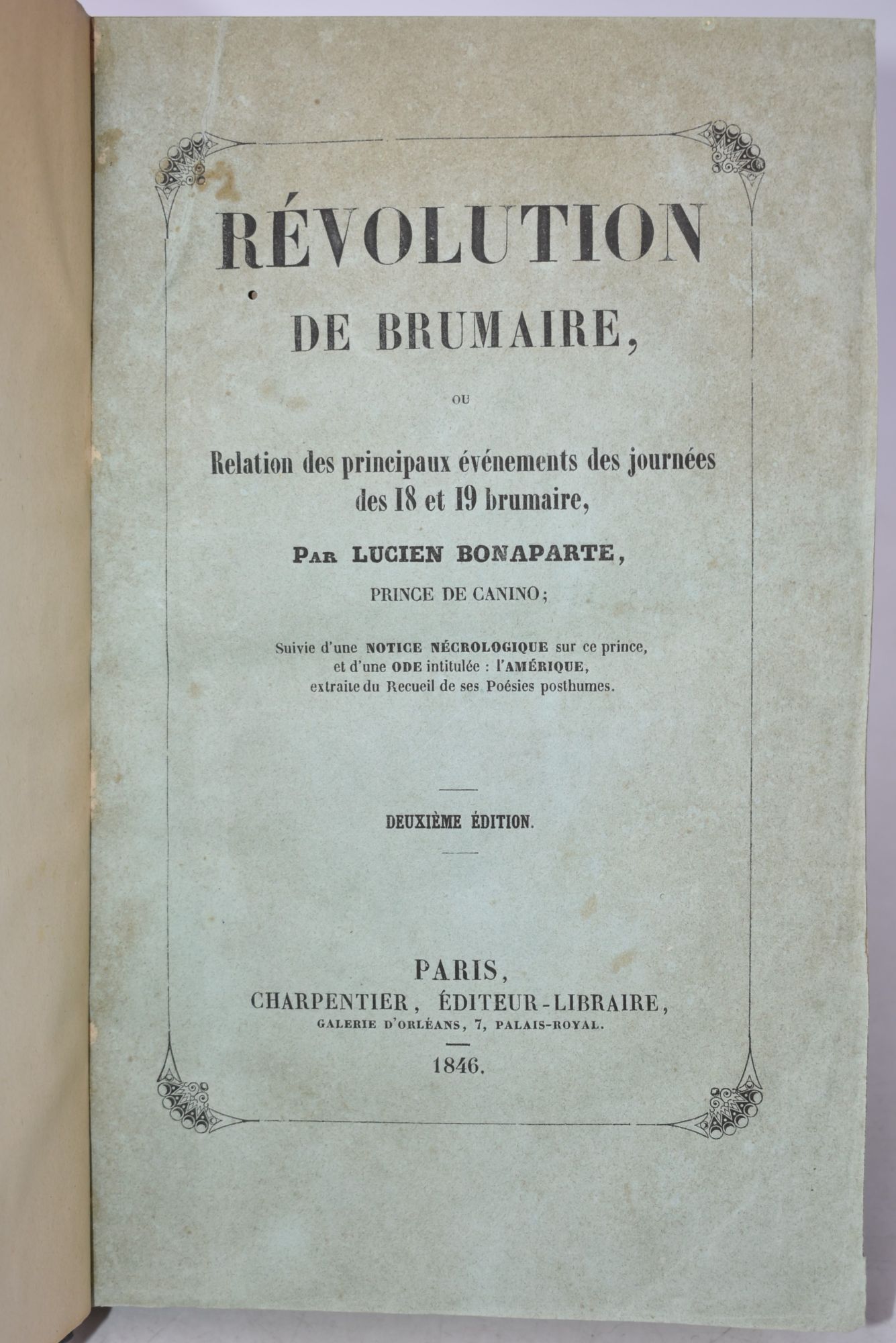 Lot 172 | Bonaparte, Lucien: RÉVOLUTION DE BRUMAIRE. RELATION DES PRINCIPAUX EVENEMENTS DES JOURNEES DES 18 ET 19 BRUMAIRE. DEUXIEME EDITION. Paris, 1846, Charpentier.