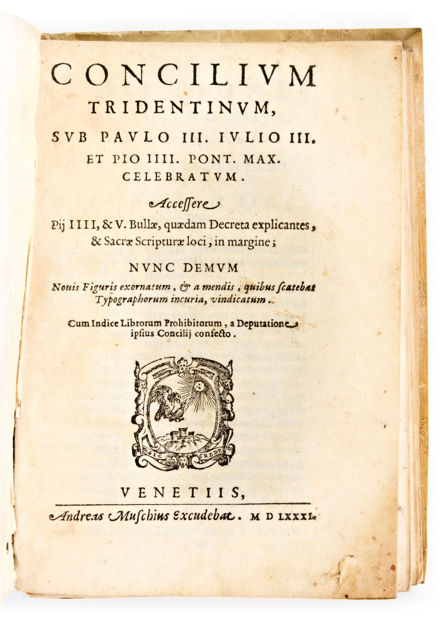 Concilio di Trento :Concilium Tridentinum, sub Paulo 3. Iulio 3. et 4. pont. max. celebratum... Cum Indice librorum prohibitorum .. Venezia, Andrea Muschio 1581