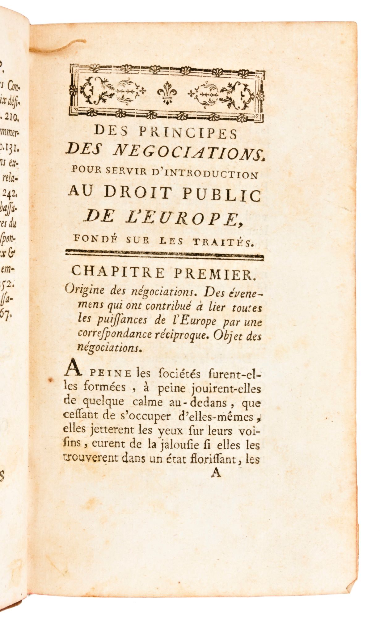[POLITICA] de Mably, Gabriel : Des principes des négociations. Pour servir d'introduction au droit public de l'Europe, fondé sur les traités ... A La Haie, 1757