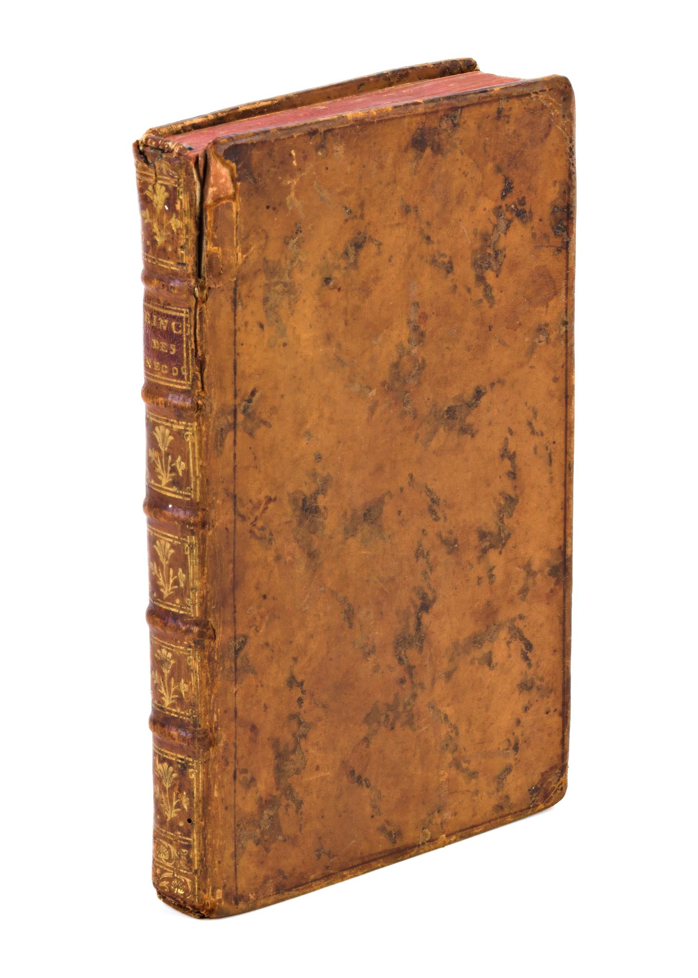 In-12°, mm. 170x110, pp. (10), 278, (2). Completo. Elegante rilegatura coeva in piena pelle con 5 nervature, titoli e fregi in oro al dorso. Tagli delle carte in rosso. Risguardi in carta marmorizzata. Difetto alla cerniera anteriore. Restauro al margine della c. A2. Sporadiche fioriture.