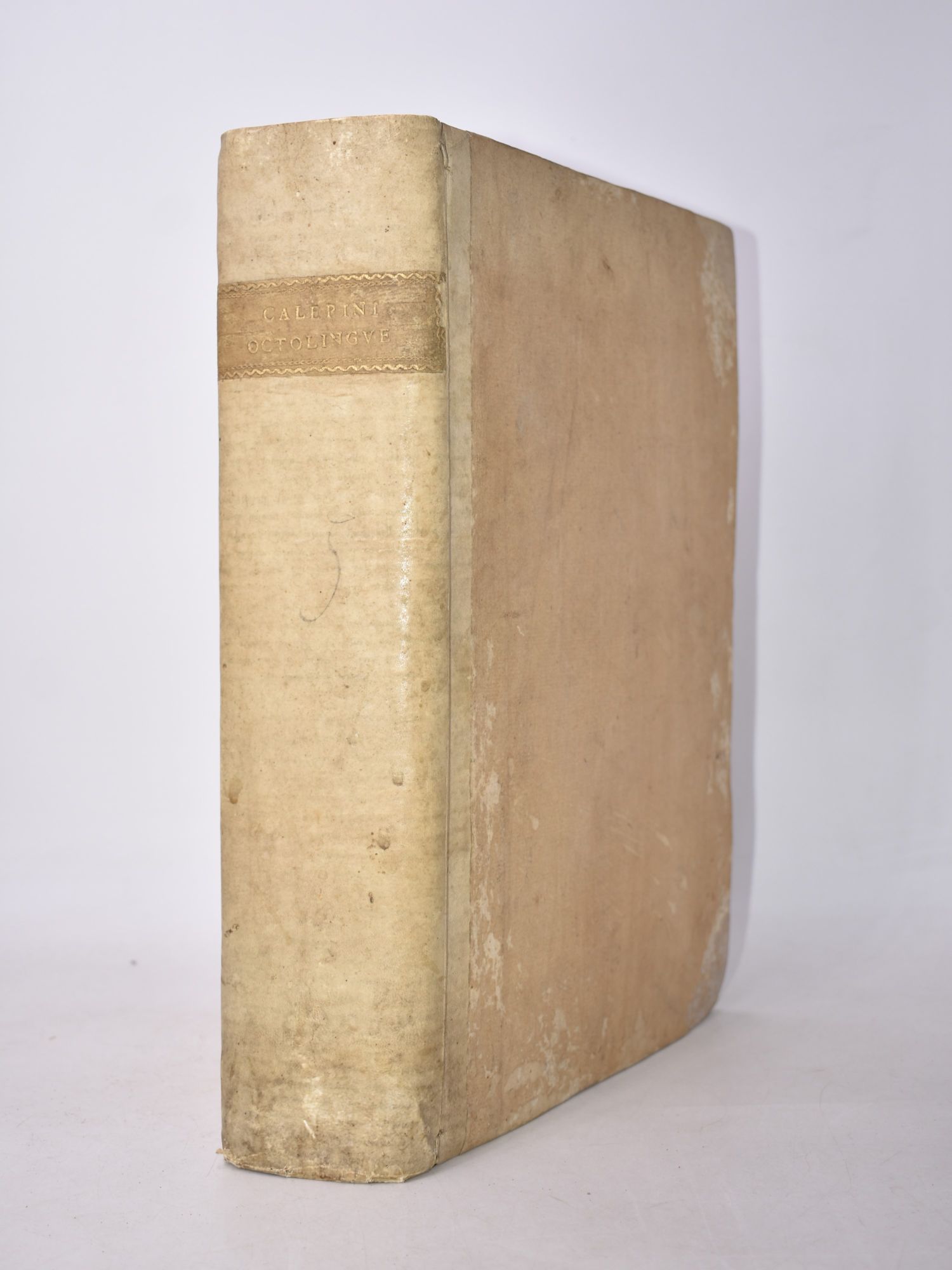 Calepino, Ambrogio AMBROSII CALEPINI DICTIONARIUM OCTOLINGUE, IN QUO LATINIS DICTIONIBUS HEBRAEAE, GRAECAE, GALLICAE, ITALICAE, GERMANICAE, HISPANICAE, ATQUE ANGLICAE ADIECTAE SUNT. RECENSUIT, DEFOECAUIT, AUXÍTQUE MULTÙM IOANNES PASSERATIUS ... ACCESSERUNT ETIAM INSIGNES LOQUENDI MODI, LECTIORES ETYMOLOGIAE, ANTITHETA, TRANSLATIONES, EMENDATIONES, ADAGIA EX OPTIMIS QUIBUSQUE AUCTORIBUS DECERPTA. … Coloniae Allobrogum, 1609, sumptibus Caldorianae Societatis.
