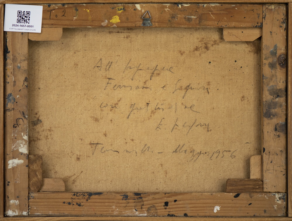 VEDOVA EMILIO (1919 - 2006) SENZA TITOLO, ANNI '40. Olio su tela. Cm 40,00 x 30,00. sul retro: firma e dedica ad personam
